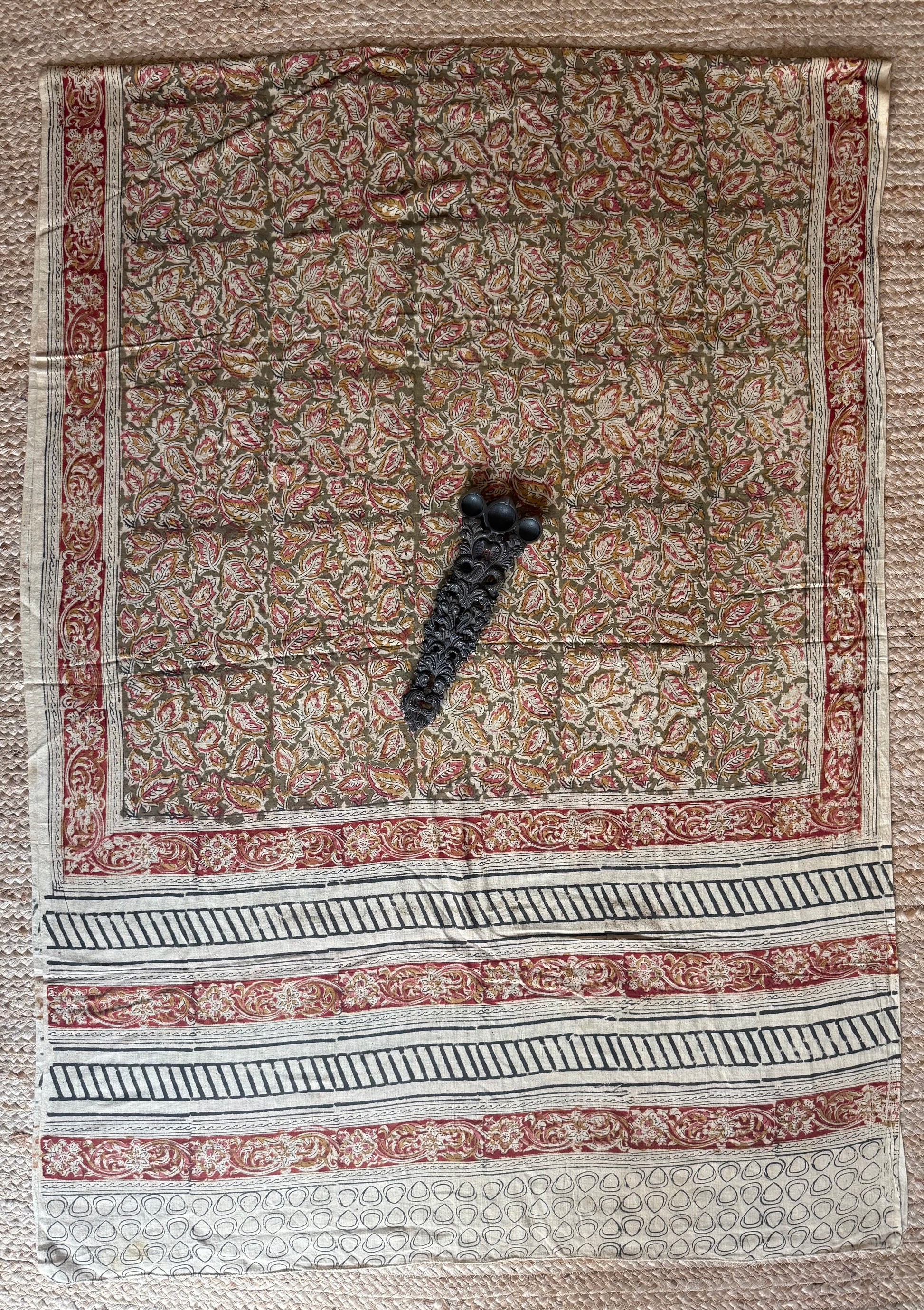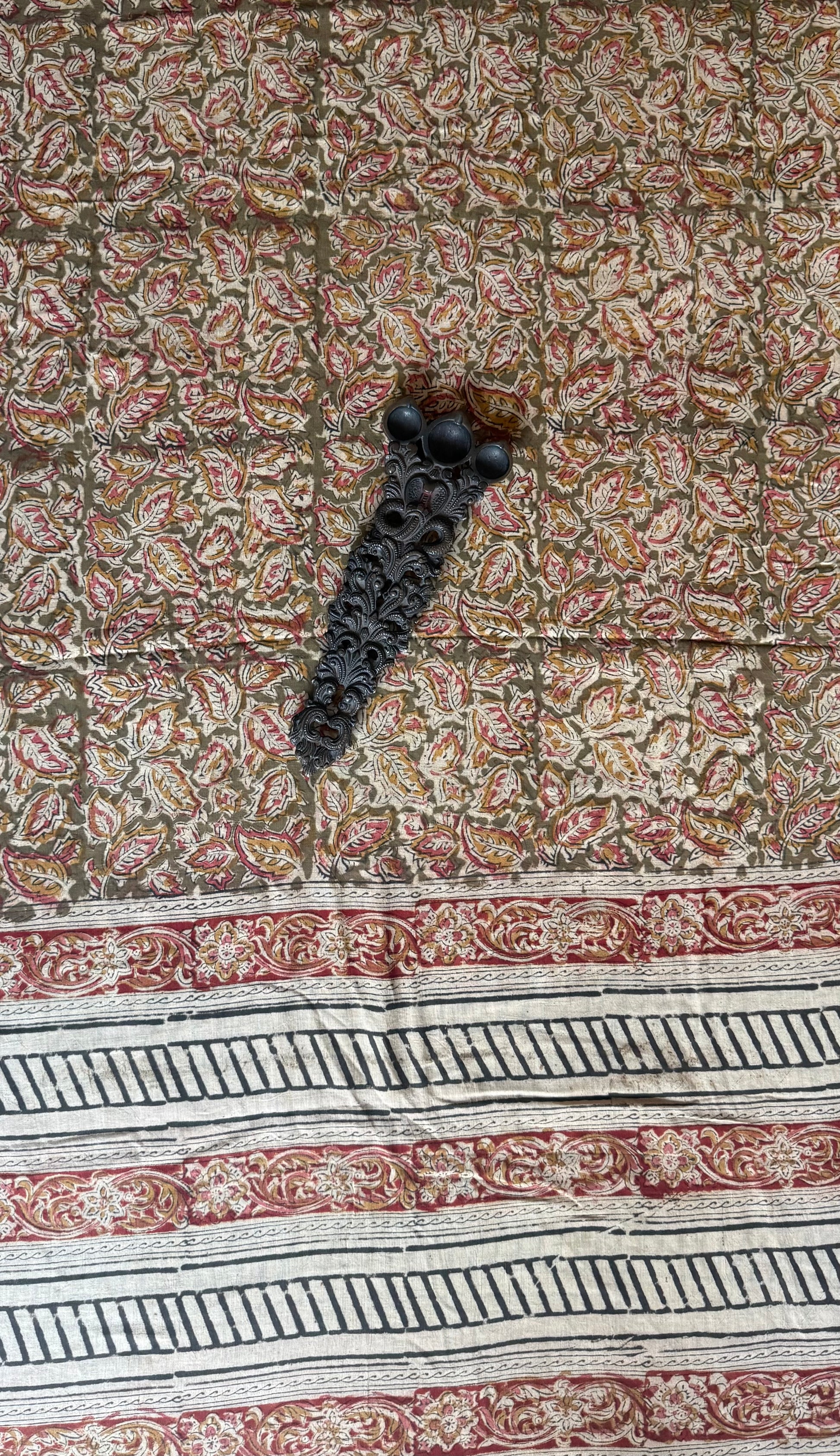 MEHENDI GREEN MAROON BEIGE KALAMKARI MULL COTTON HANDCRAFTED DUPATTA