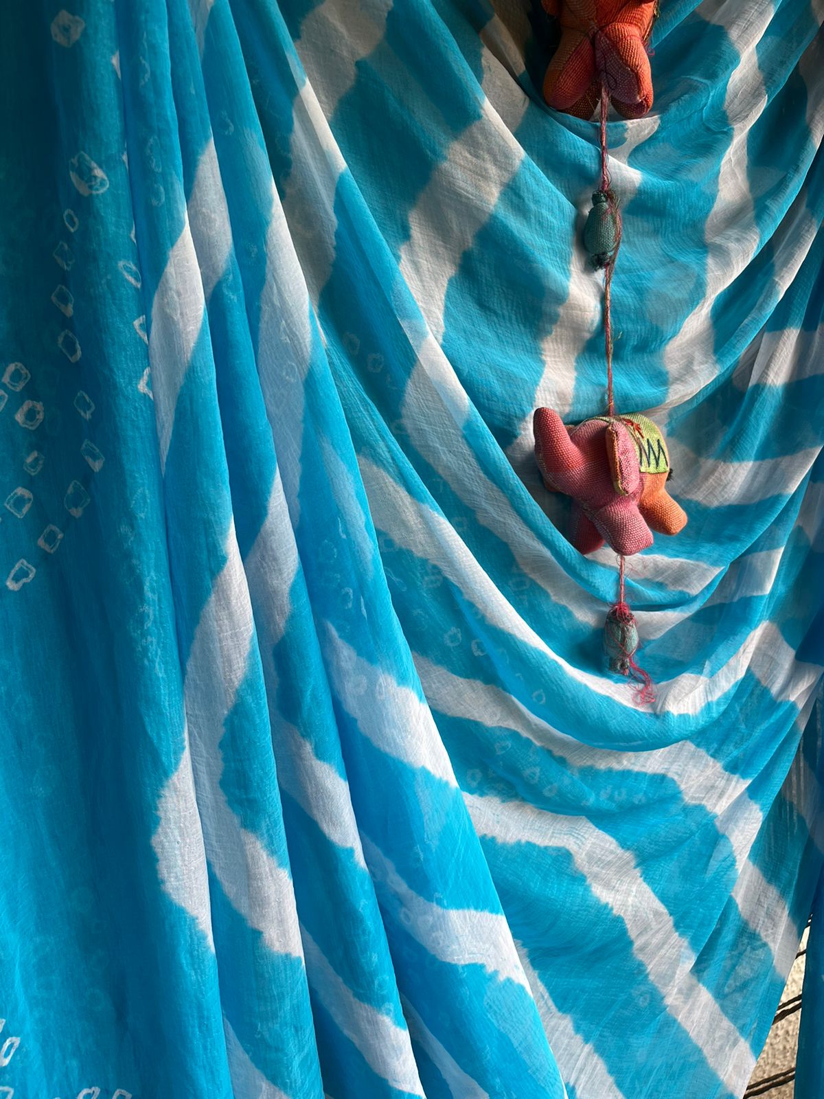SKY BLUE LEHERIYA BANDHANI CHIFFON SAREE WITH HAVE ITS OWN CONTRAST BLOUSE PIECE (80 CMS)
