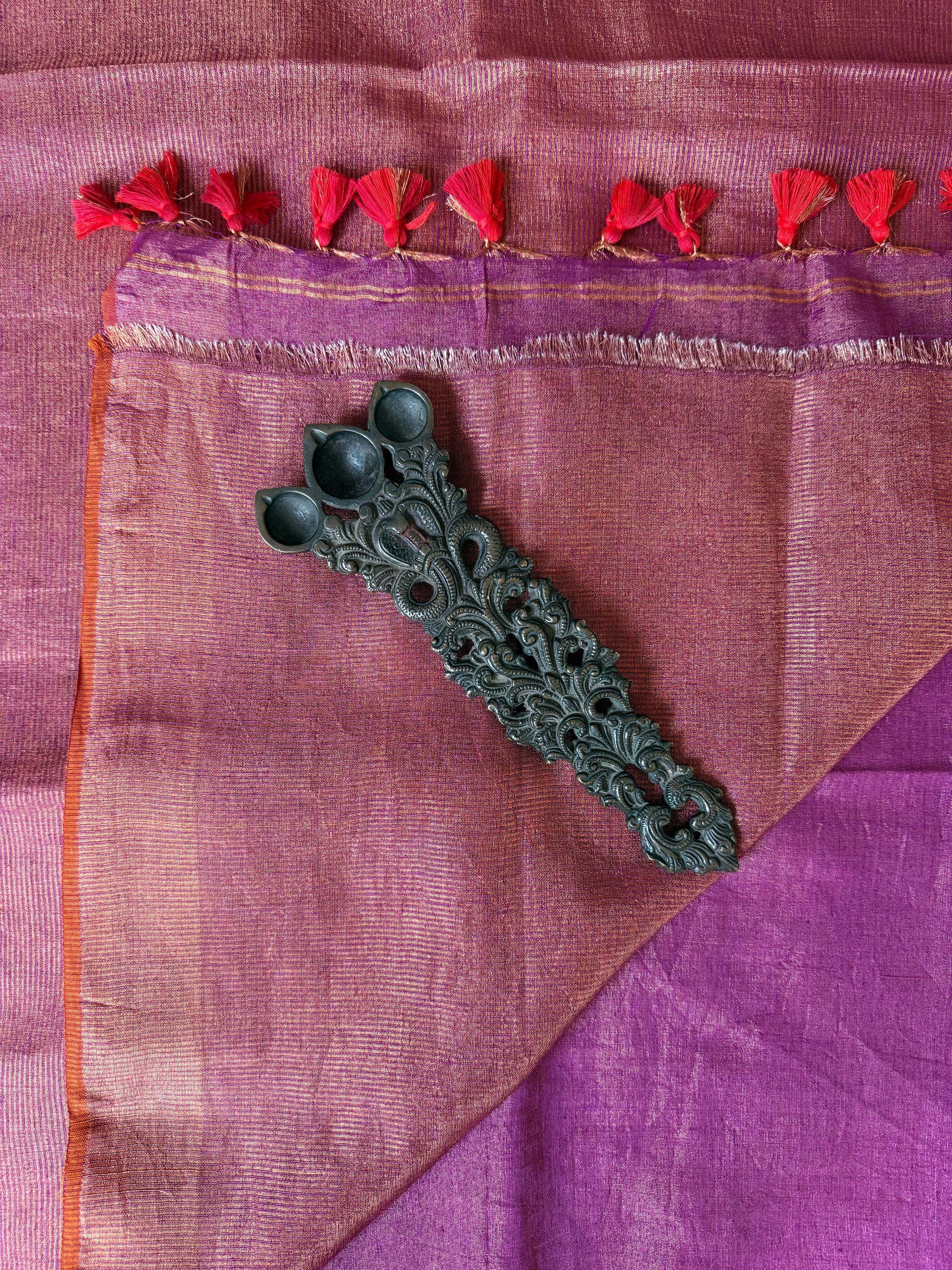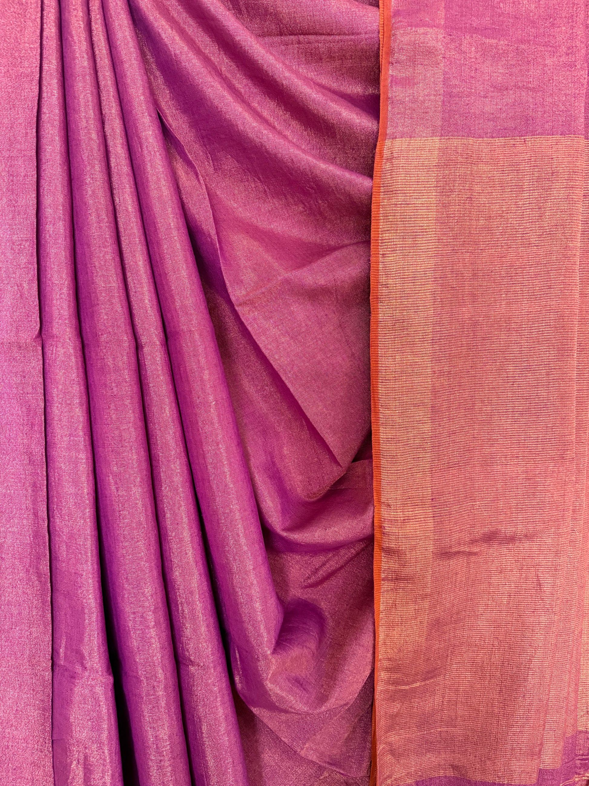 PURPLE PINK SILVER TISSUE LINEN ZARI SARI WITH WOVEN RED BORDER TL-21