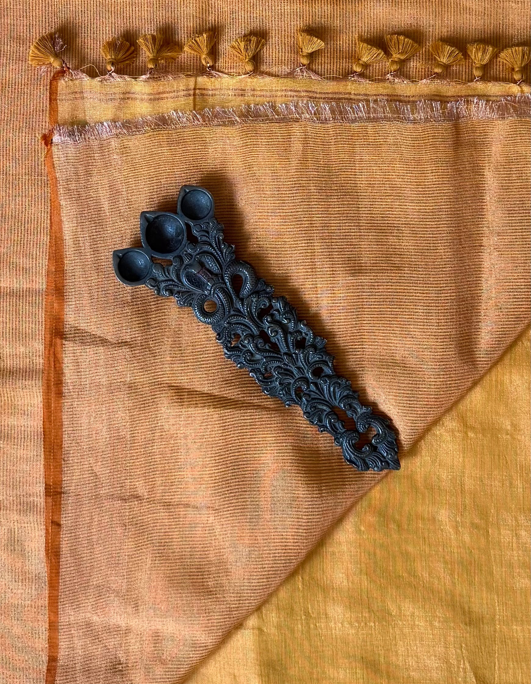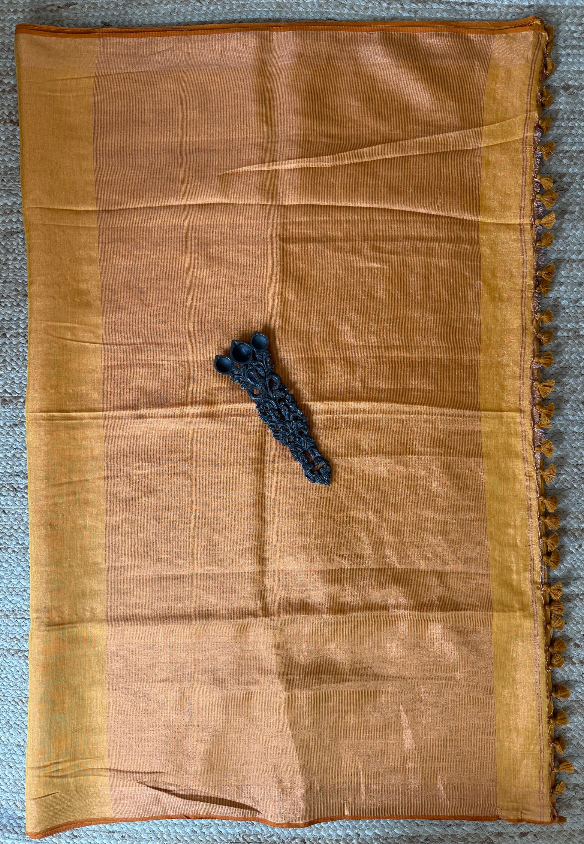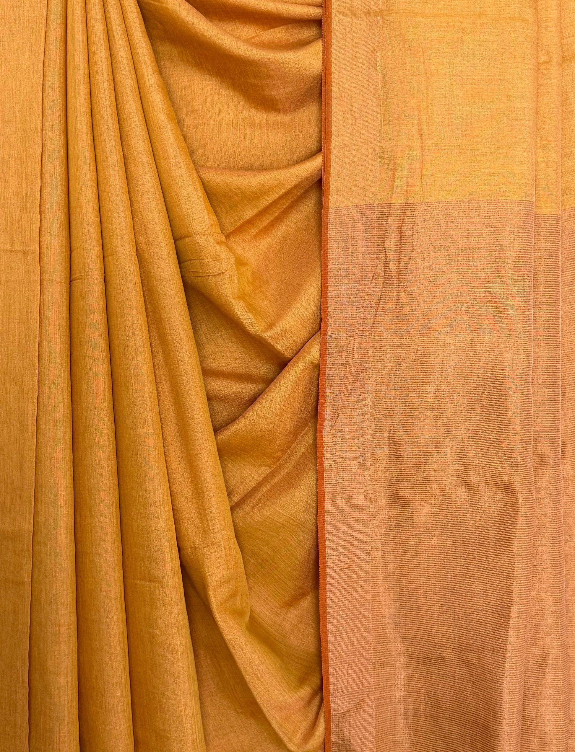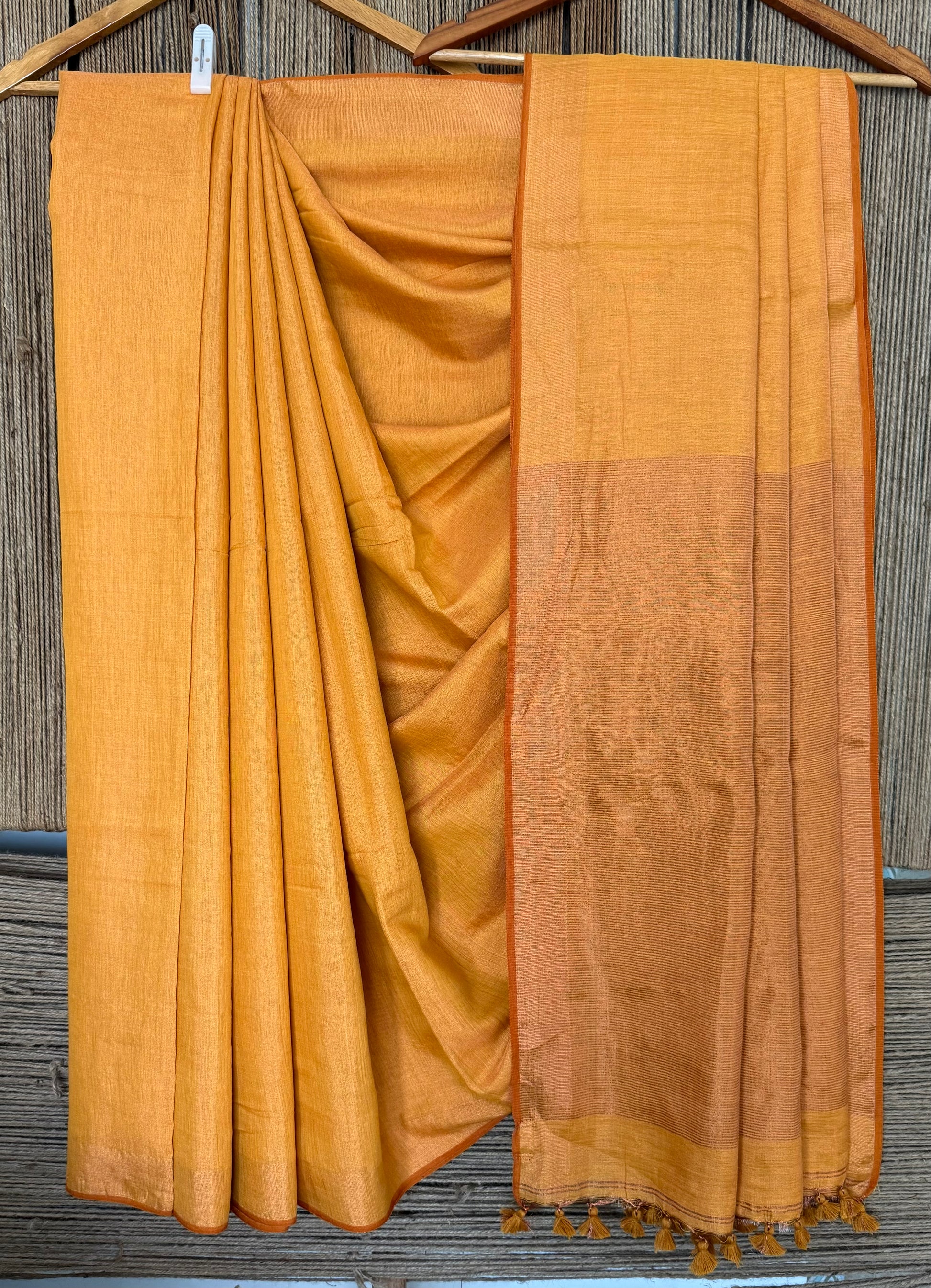 SANDALWOOD YELLOW GOLD TISSUE LINEN ZARI SARI WITH WOVEN RED BORDER TL-7