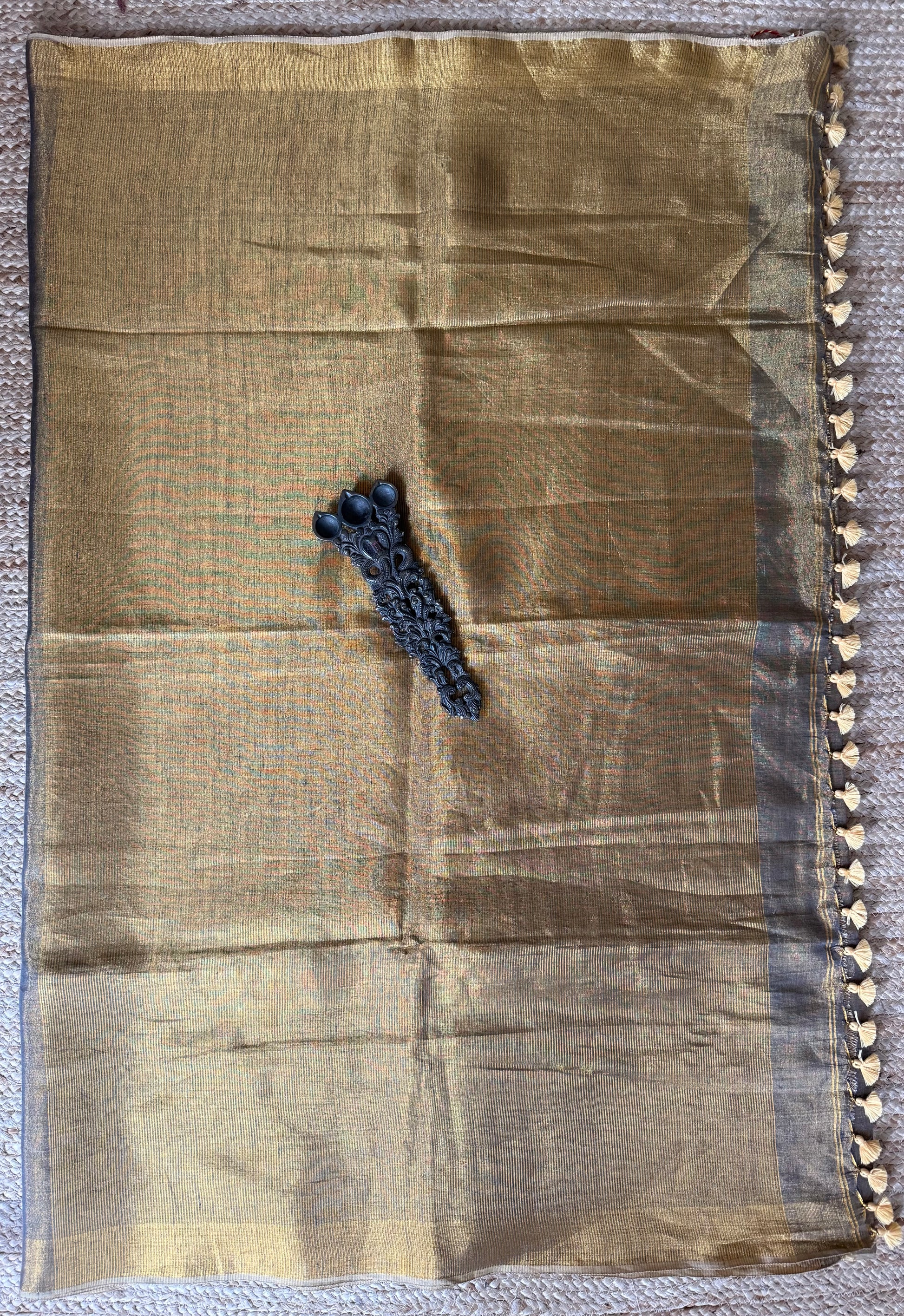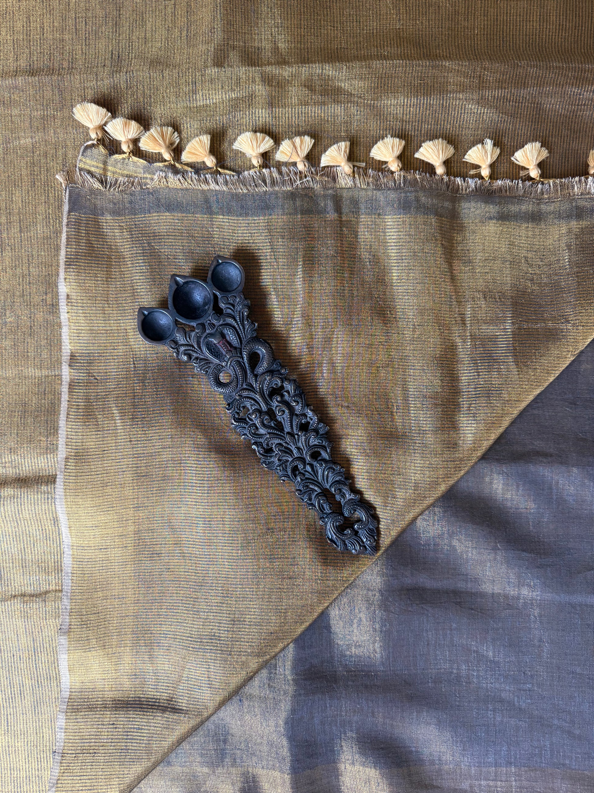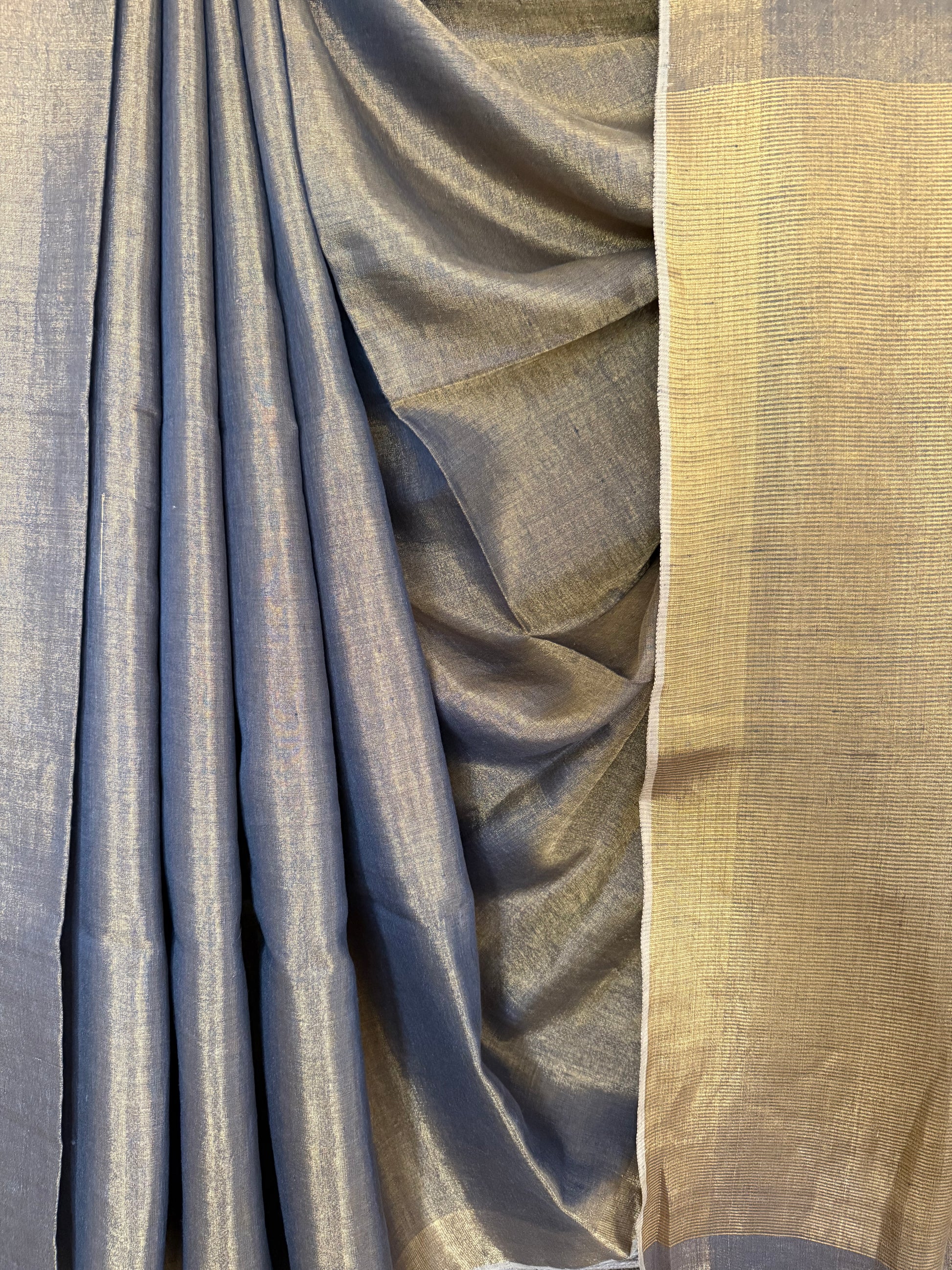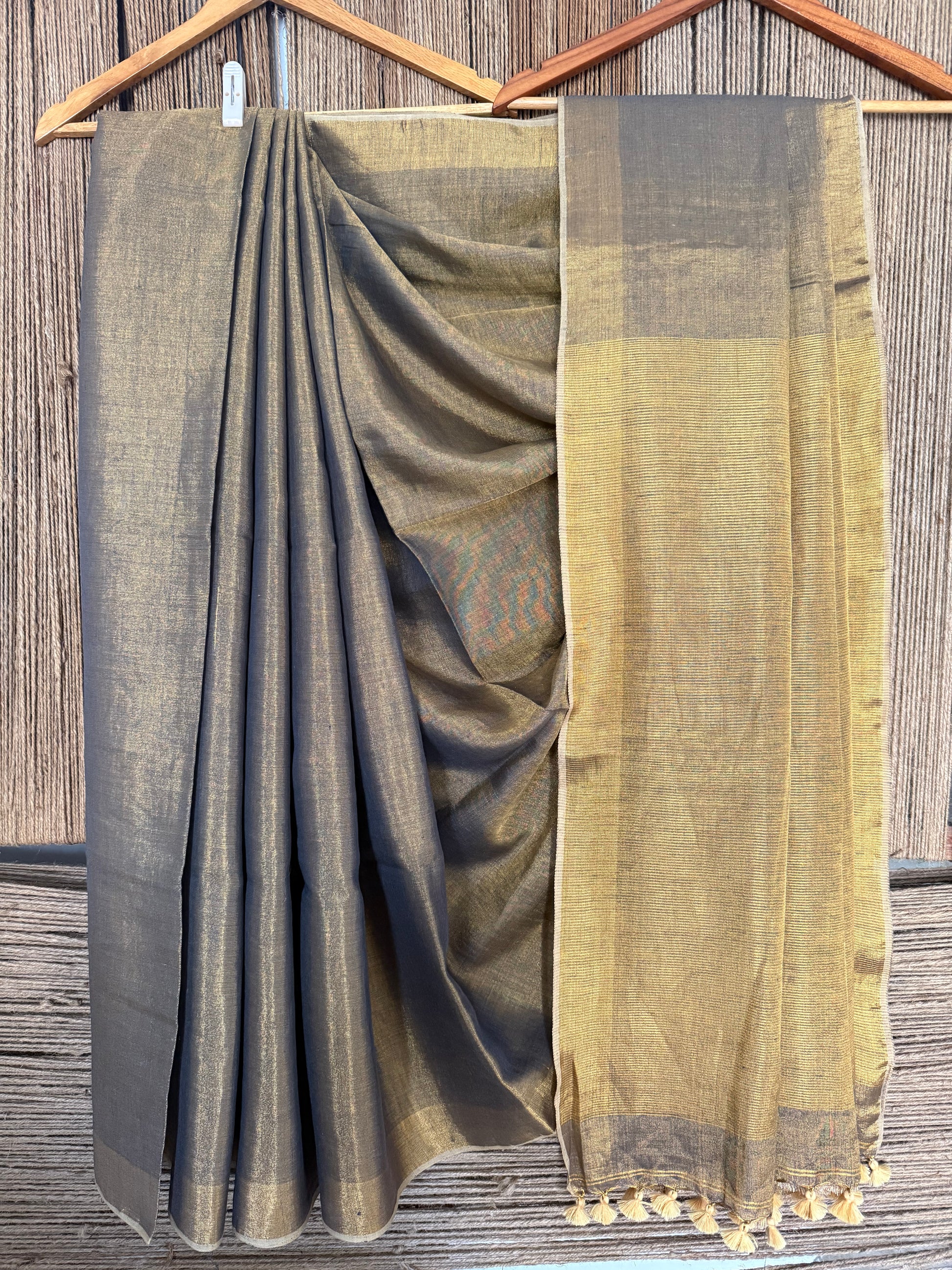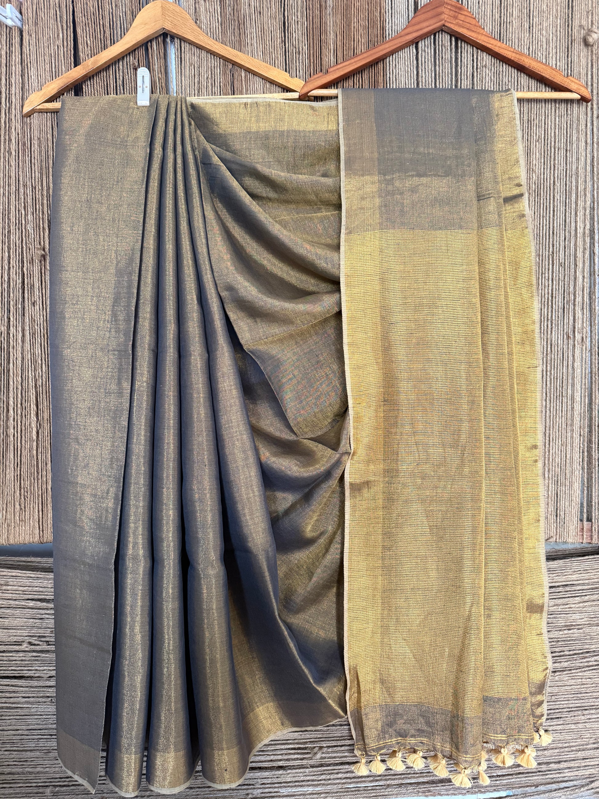 GREY COPPER TISSUE LINEN ZARI SARI WITH WOVEN RED BORDER TL-4