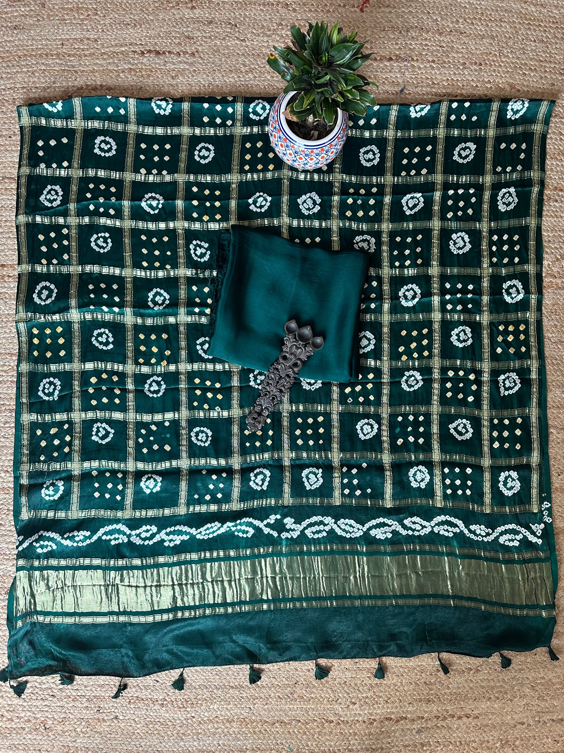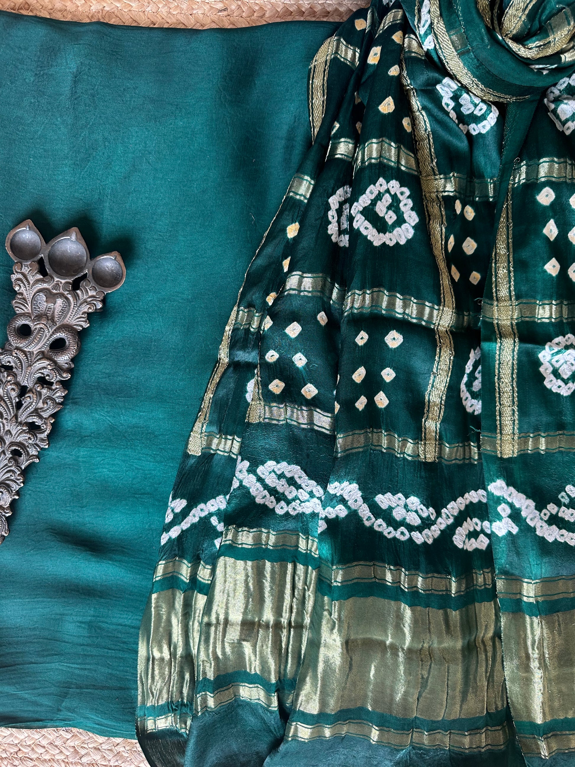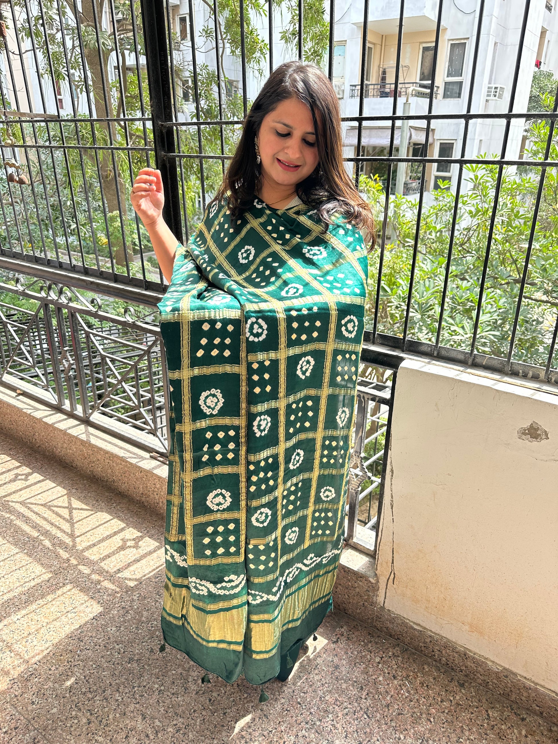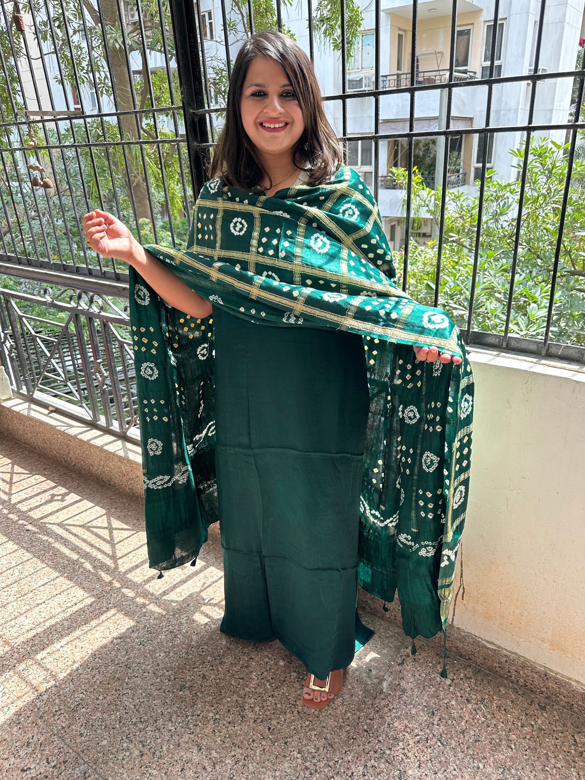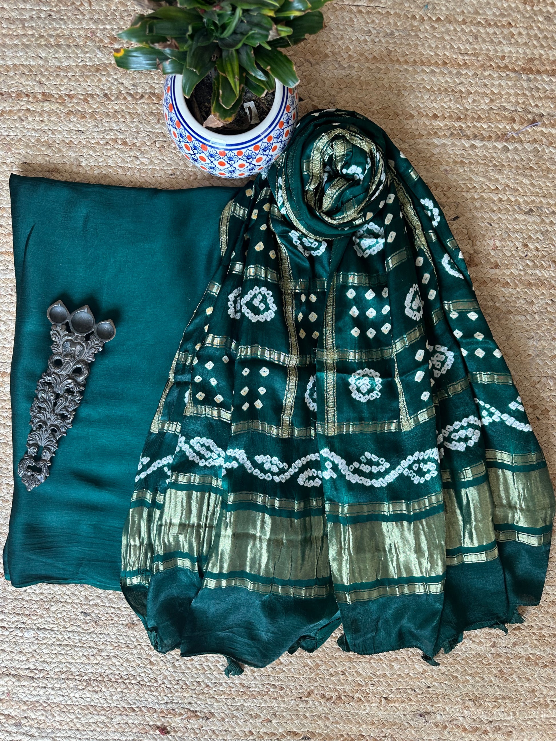 BOTTLE GREEN MODAL SILK KURTA WITH GHARCHOLA HANDCRAFTED MODAL SILK DUPATTA PS-1061