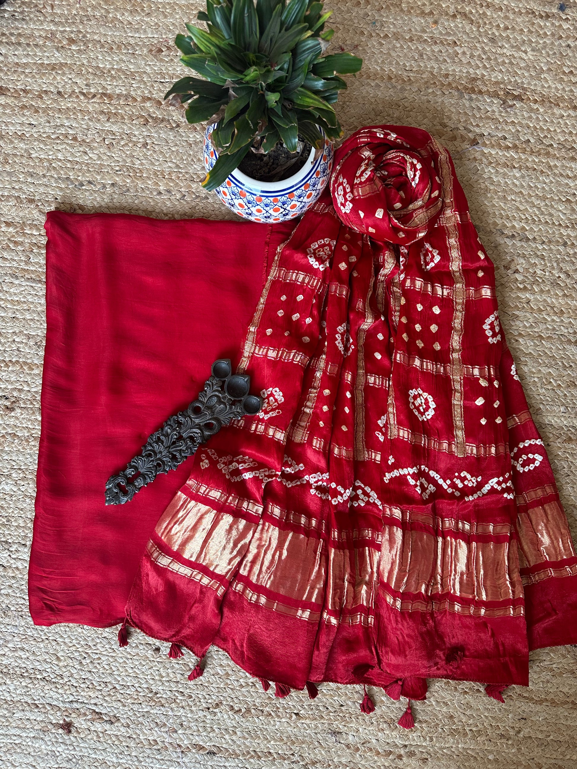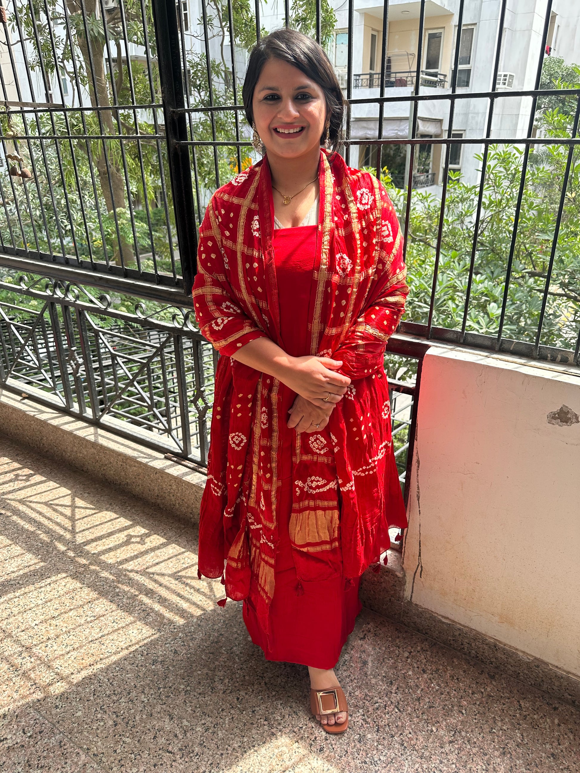 RED MODAL SILK KURTA WITH GHARCHOLA HANDCRAFTED MODAL SILK DUPATTA PS-1065