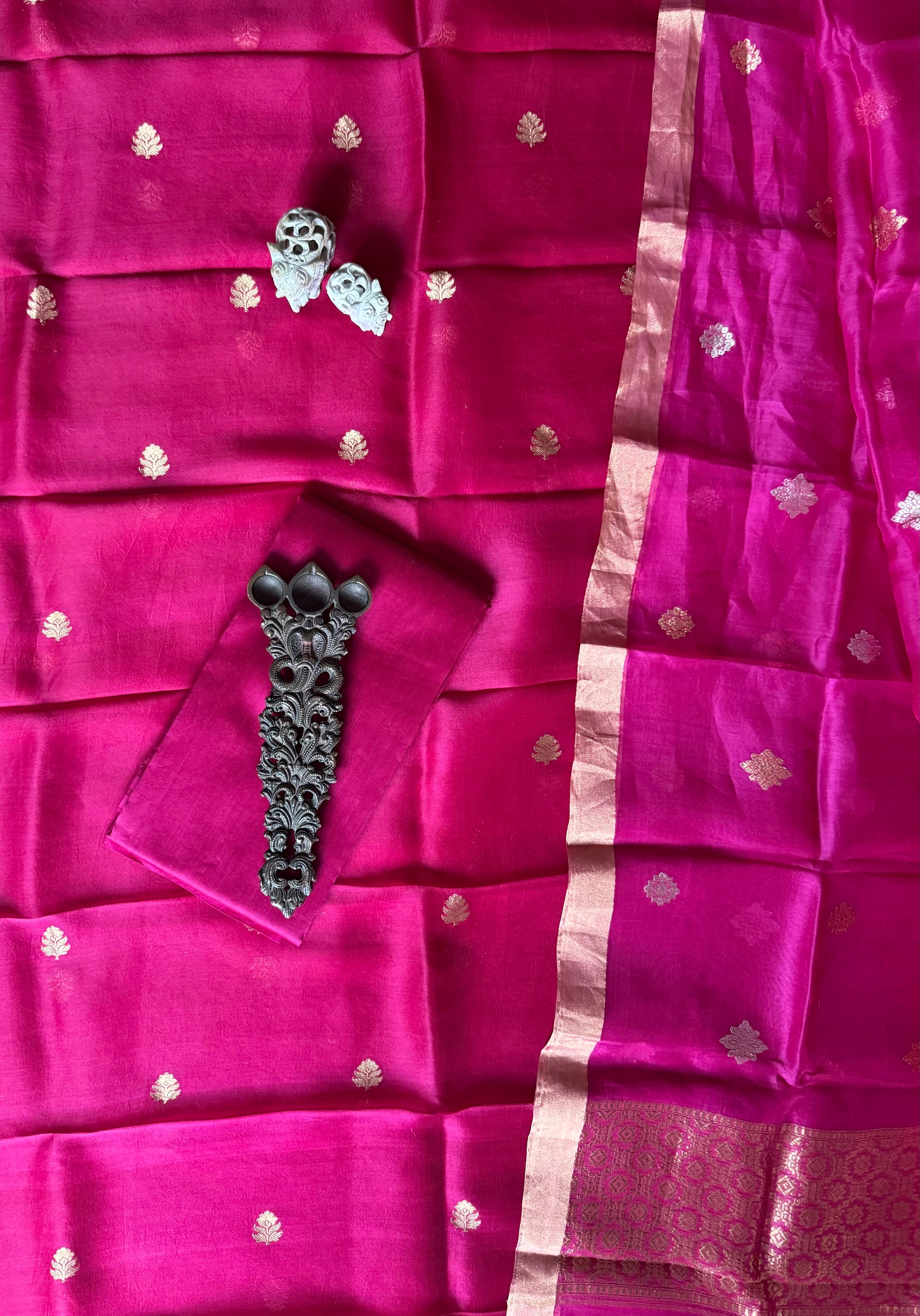 Fuchsia Pink Kora silk  certified handloom Banarsi Booti three piece suit