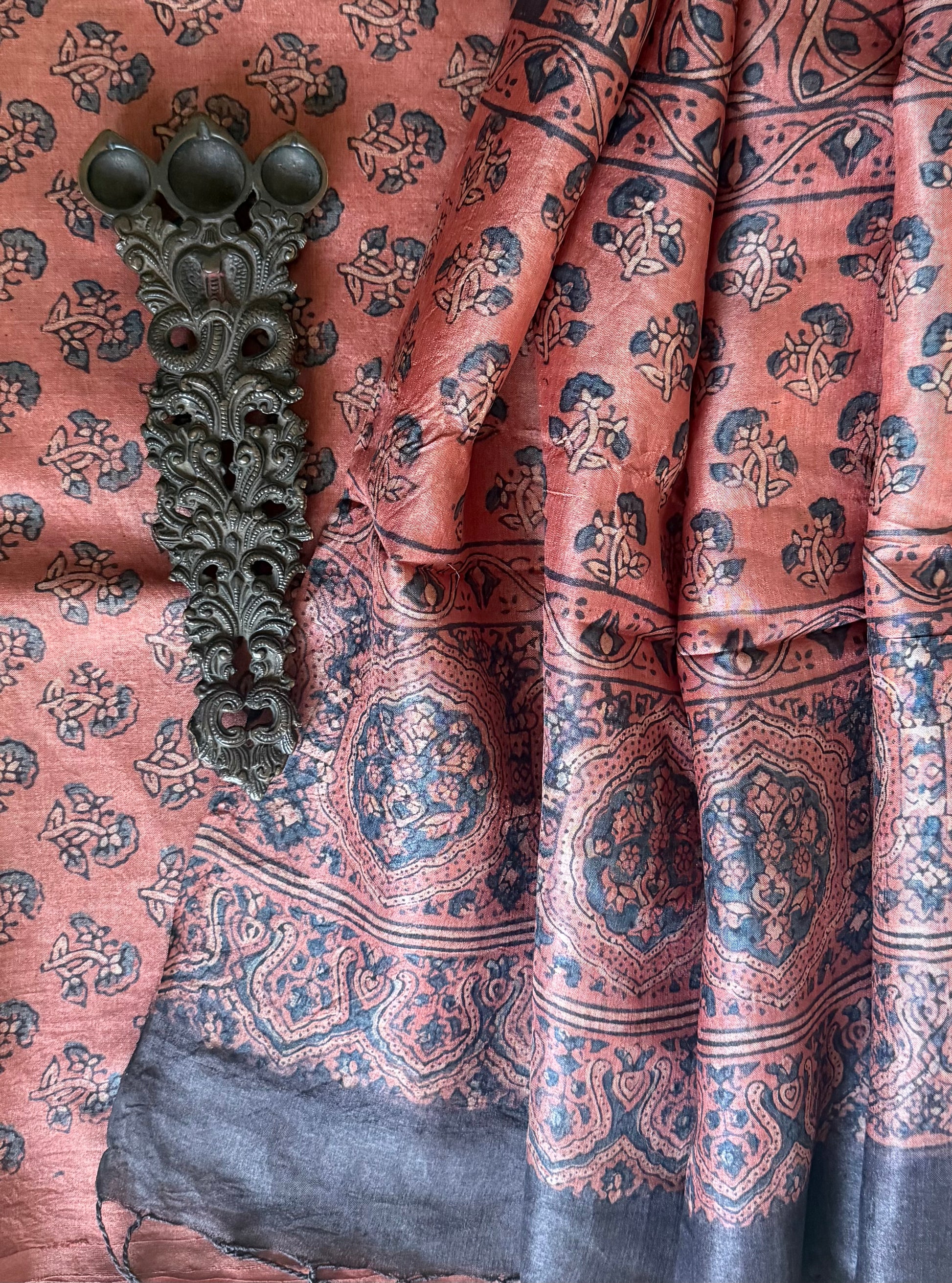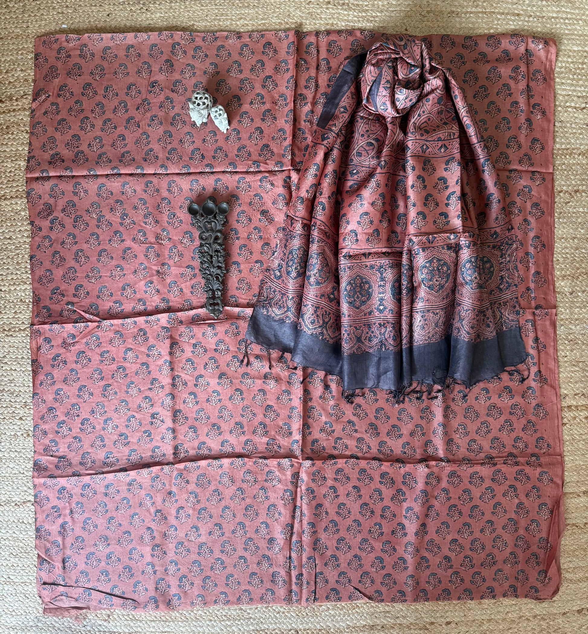 | BALLERINA PINK Ajrakh Tussar Silk hand block kurta with TUSSAR silk ajrakh hand crafted dupatta