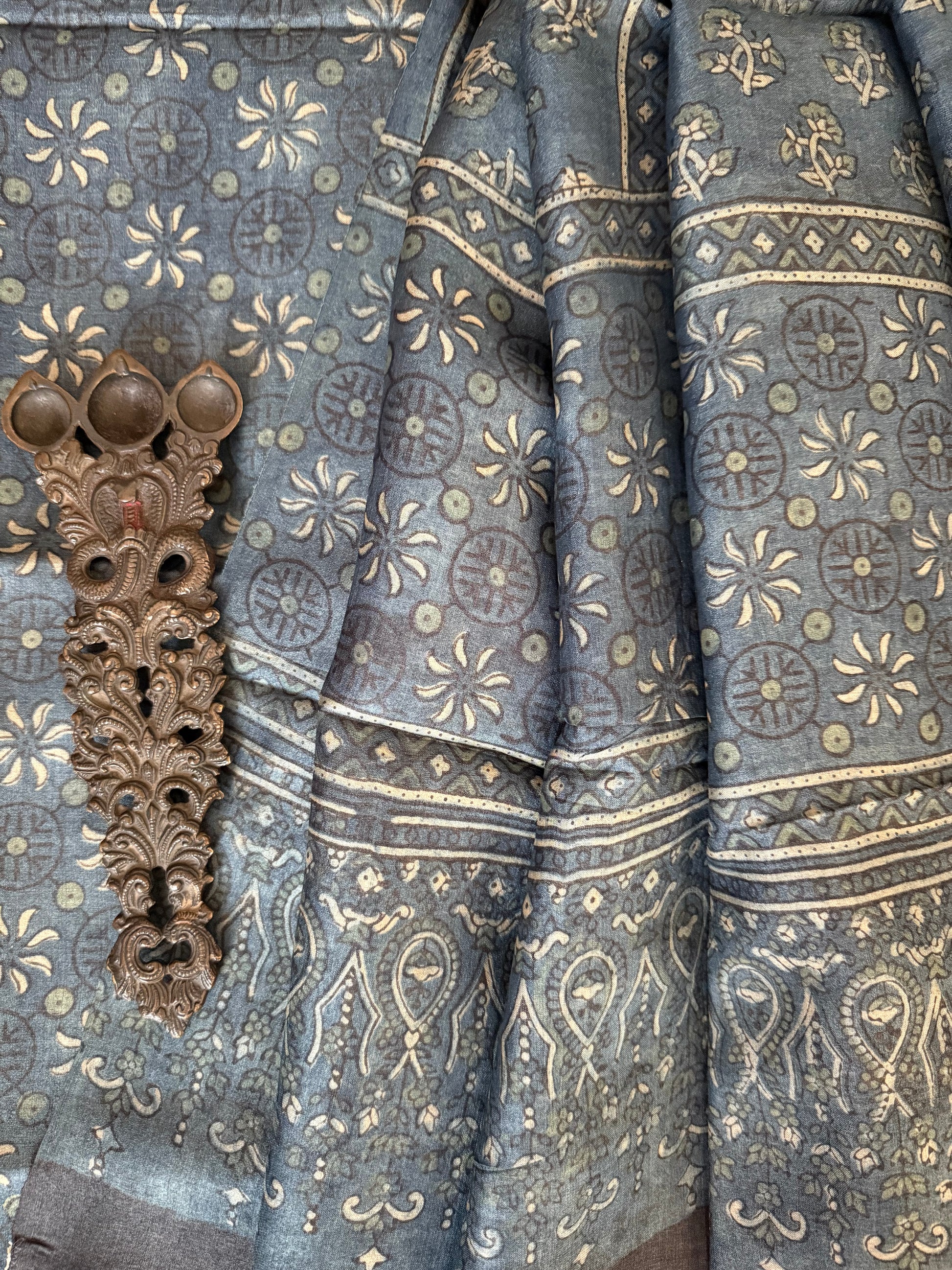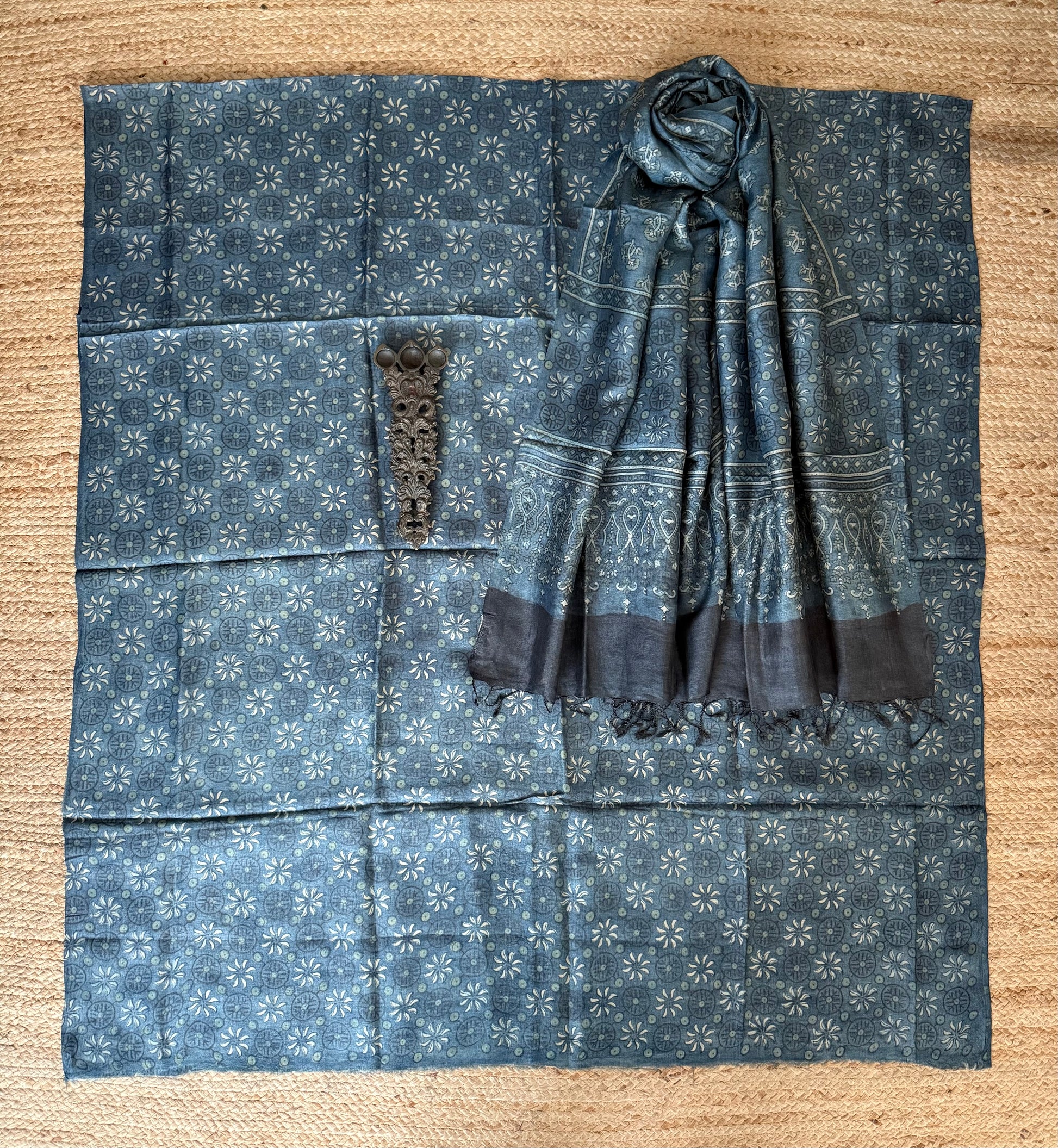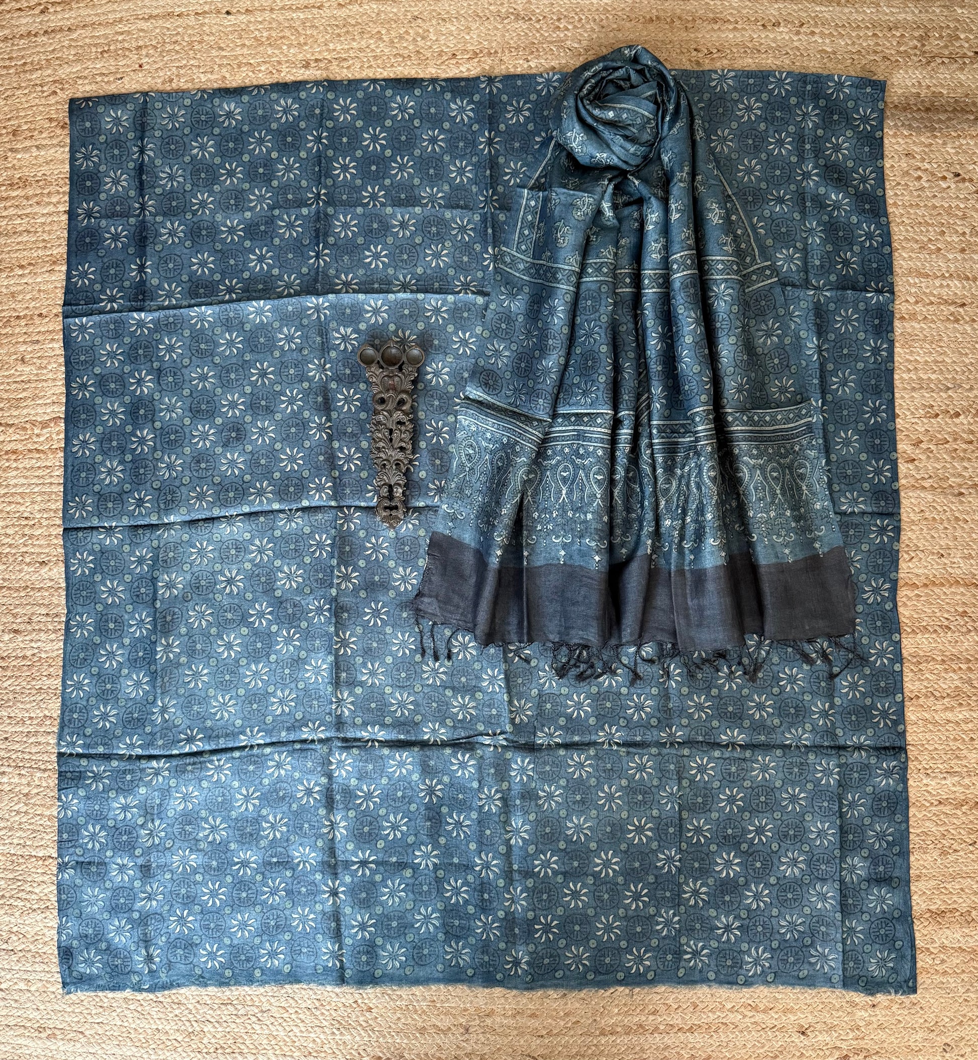 INDIGO BLUE AJRAKH TUSSAR SILK HANDBLOCK SUIT SET TSS- 23
