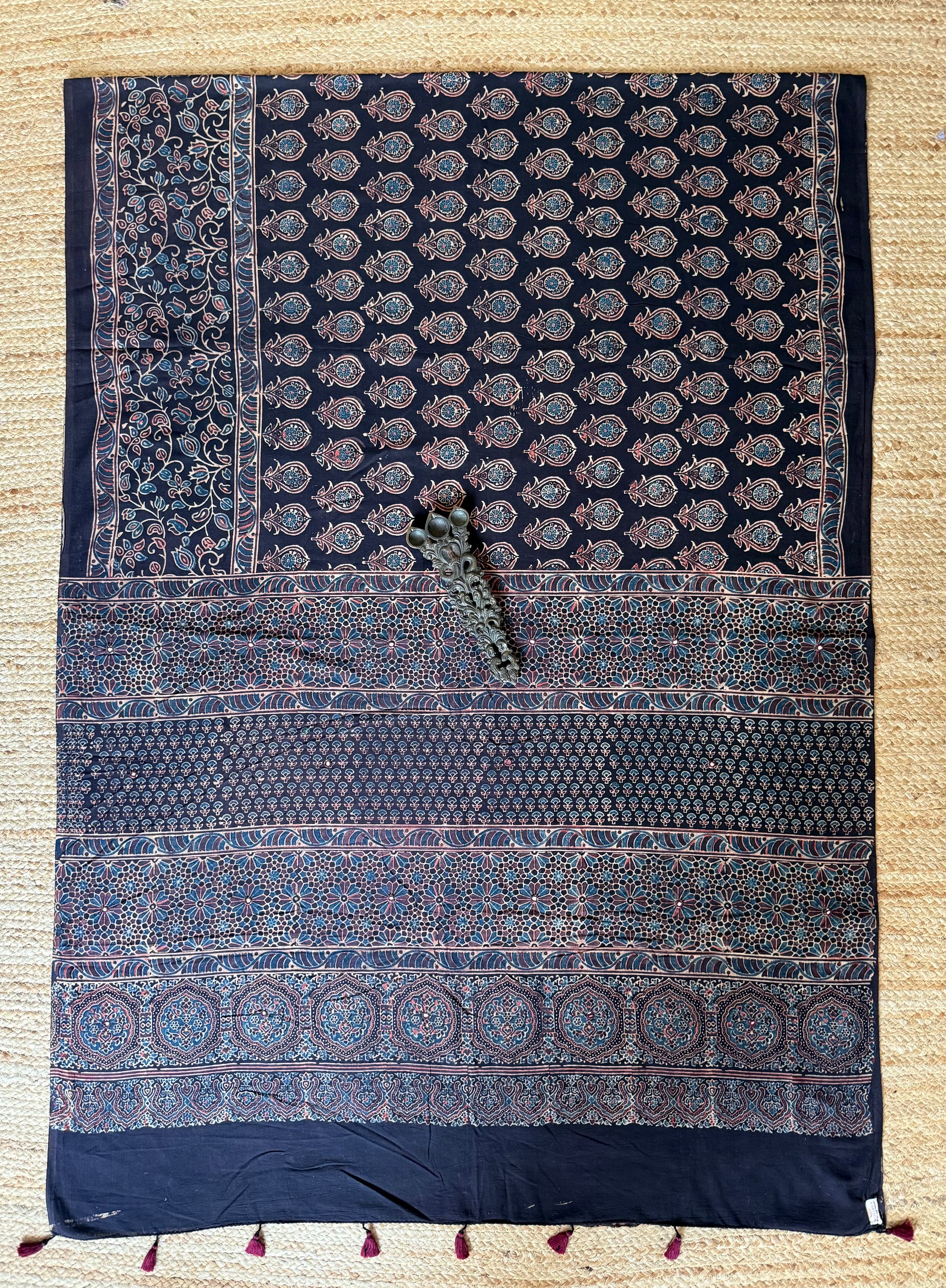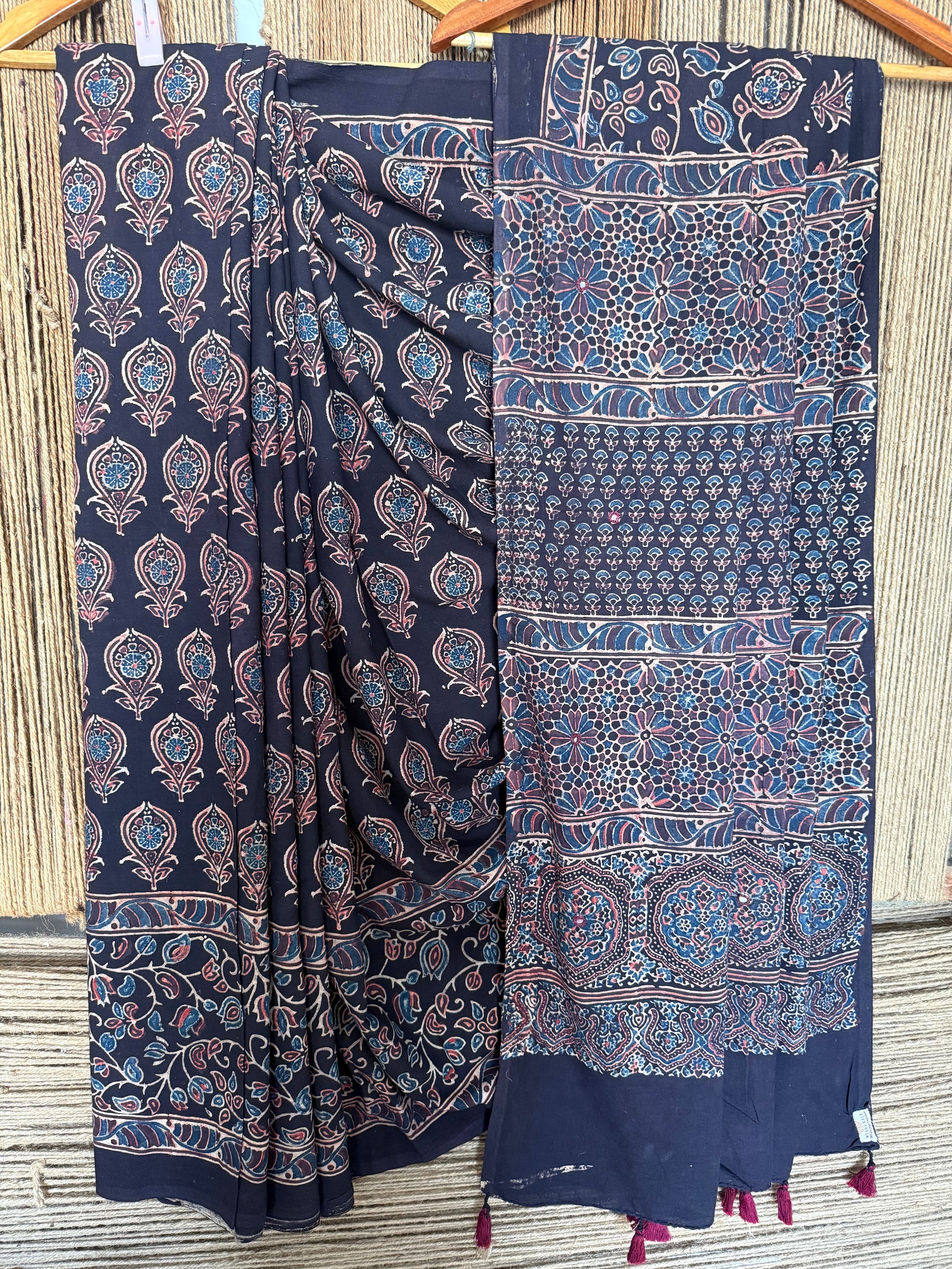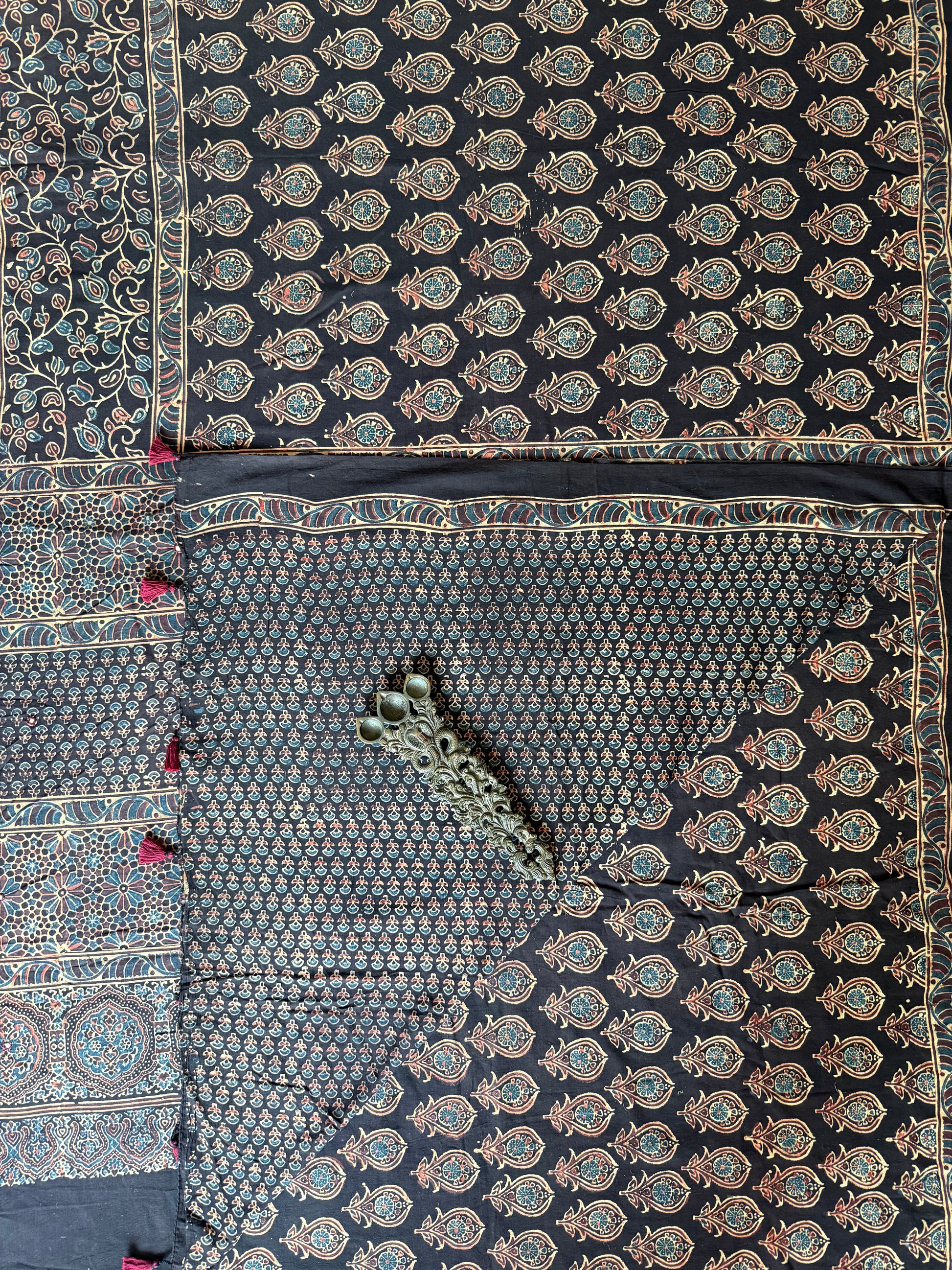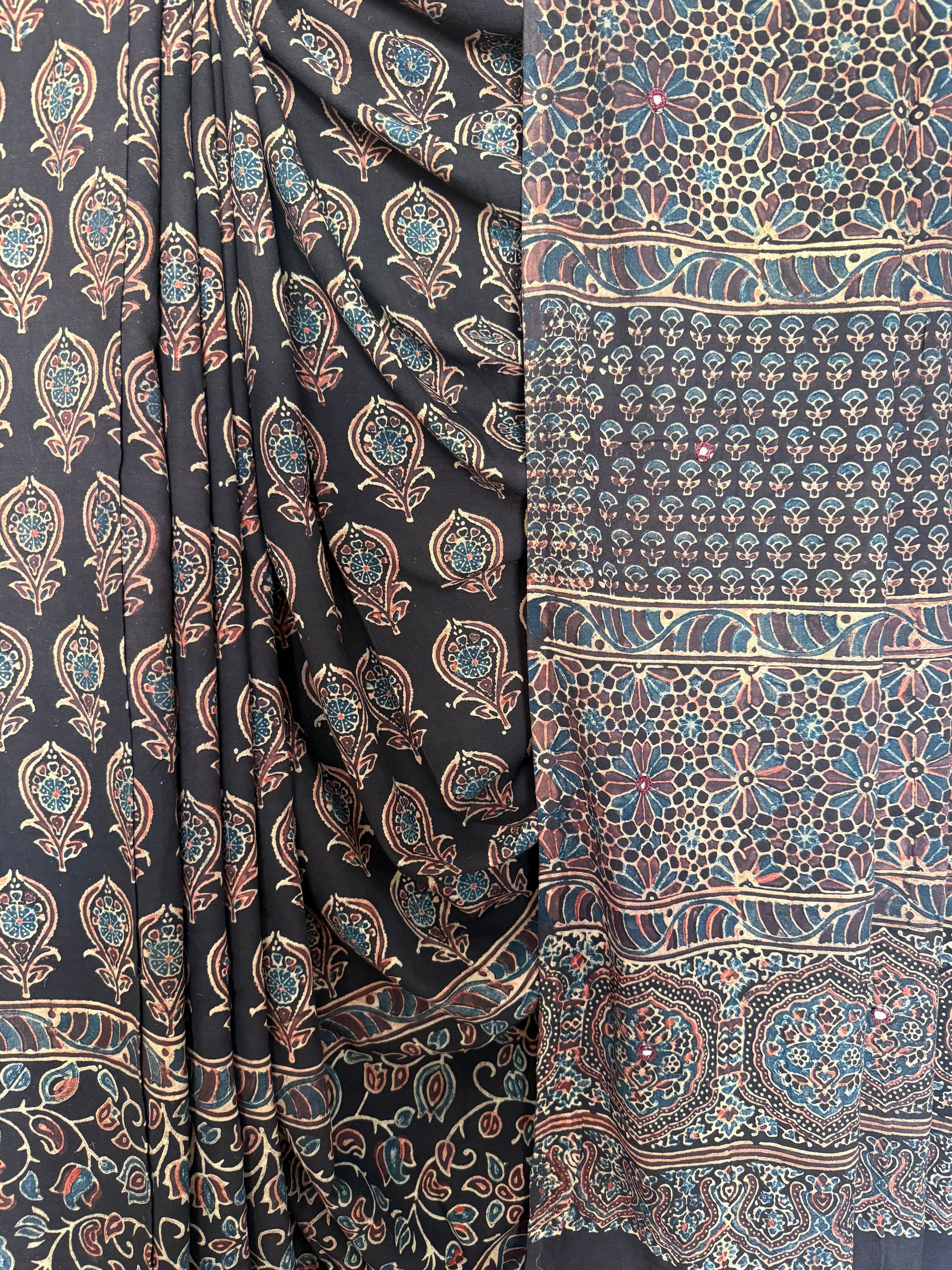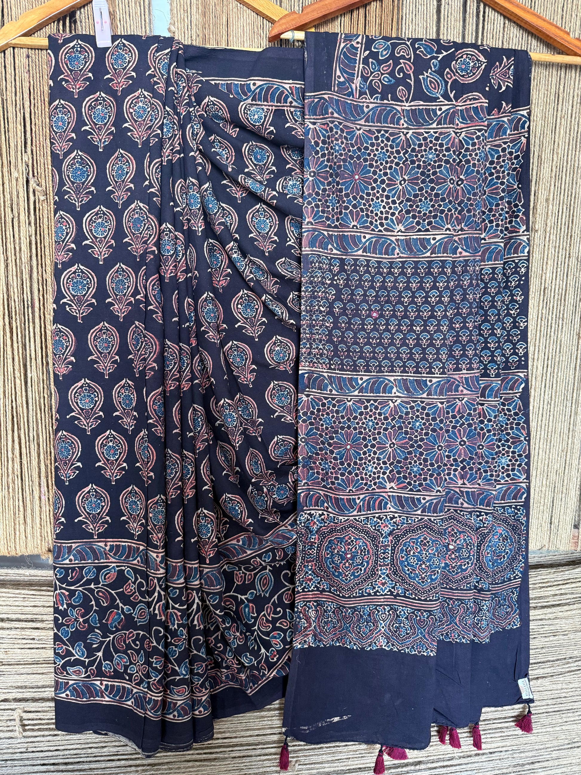 BLACK MULL COTTON AJRAKH HAND CRAFTED SARI
