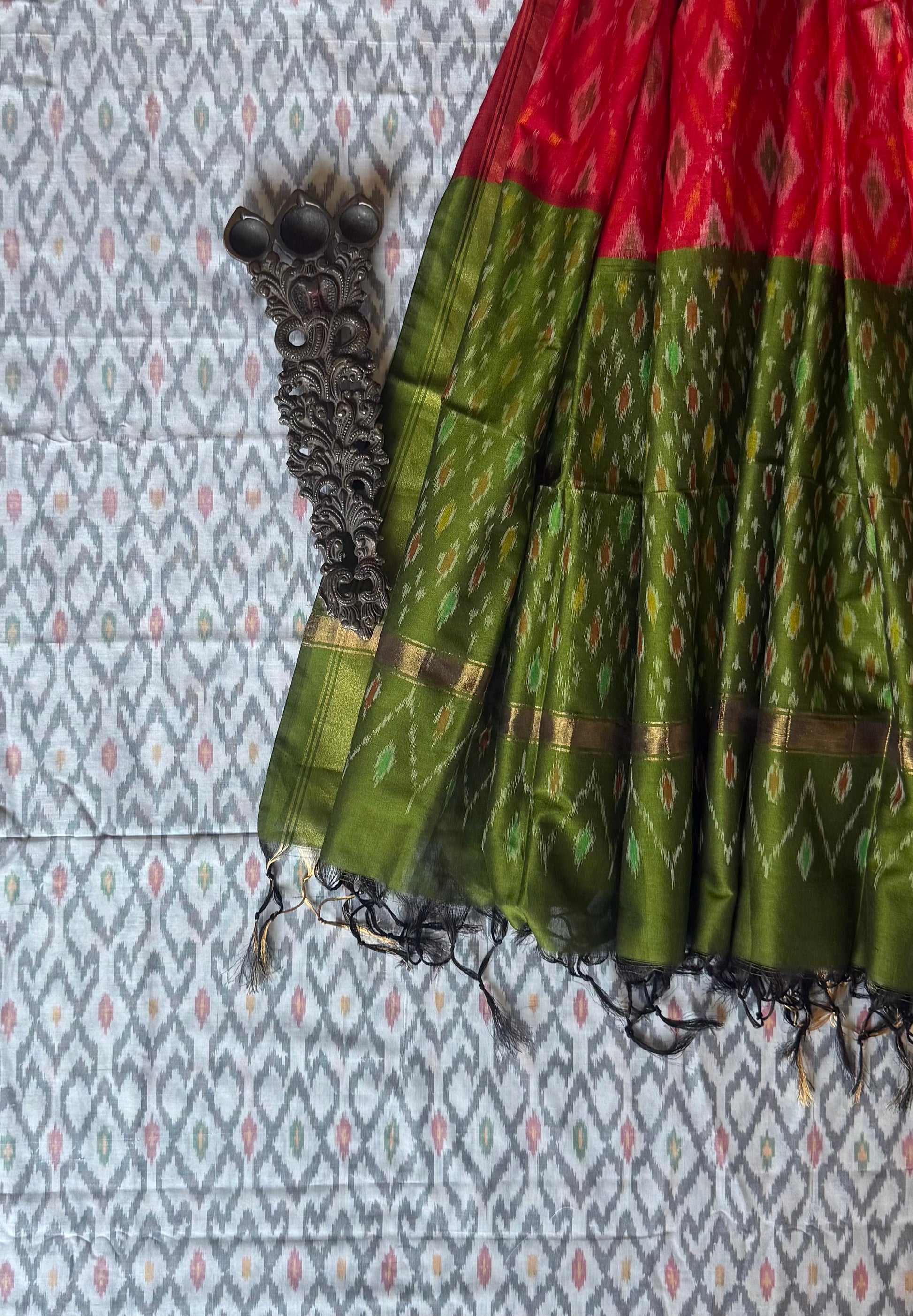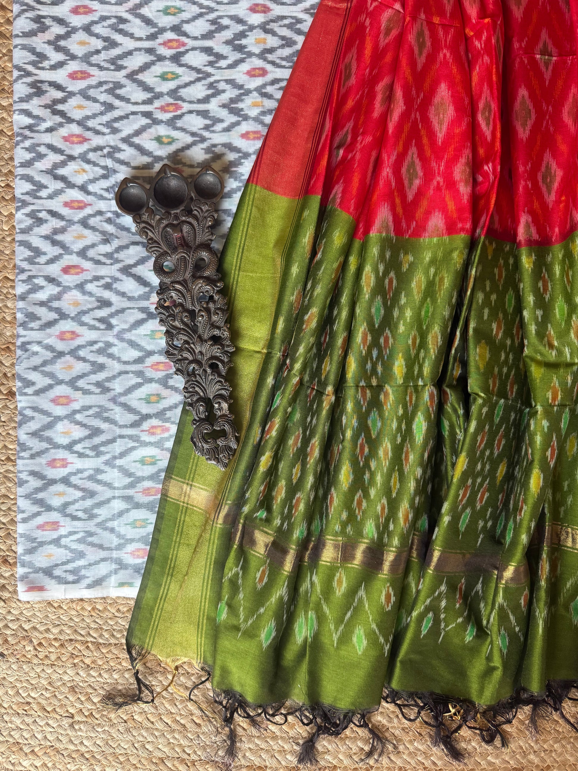 WHITE IKKAT PURE SILK HANDLOOM KURTA WITH IKKAT PURE SILK HANDWOVEN DUPATTA FABRIC: 2.5 MTRS METER