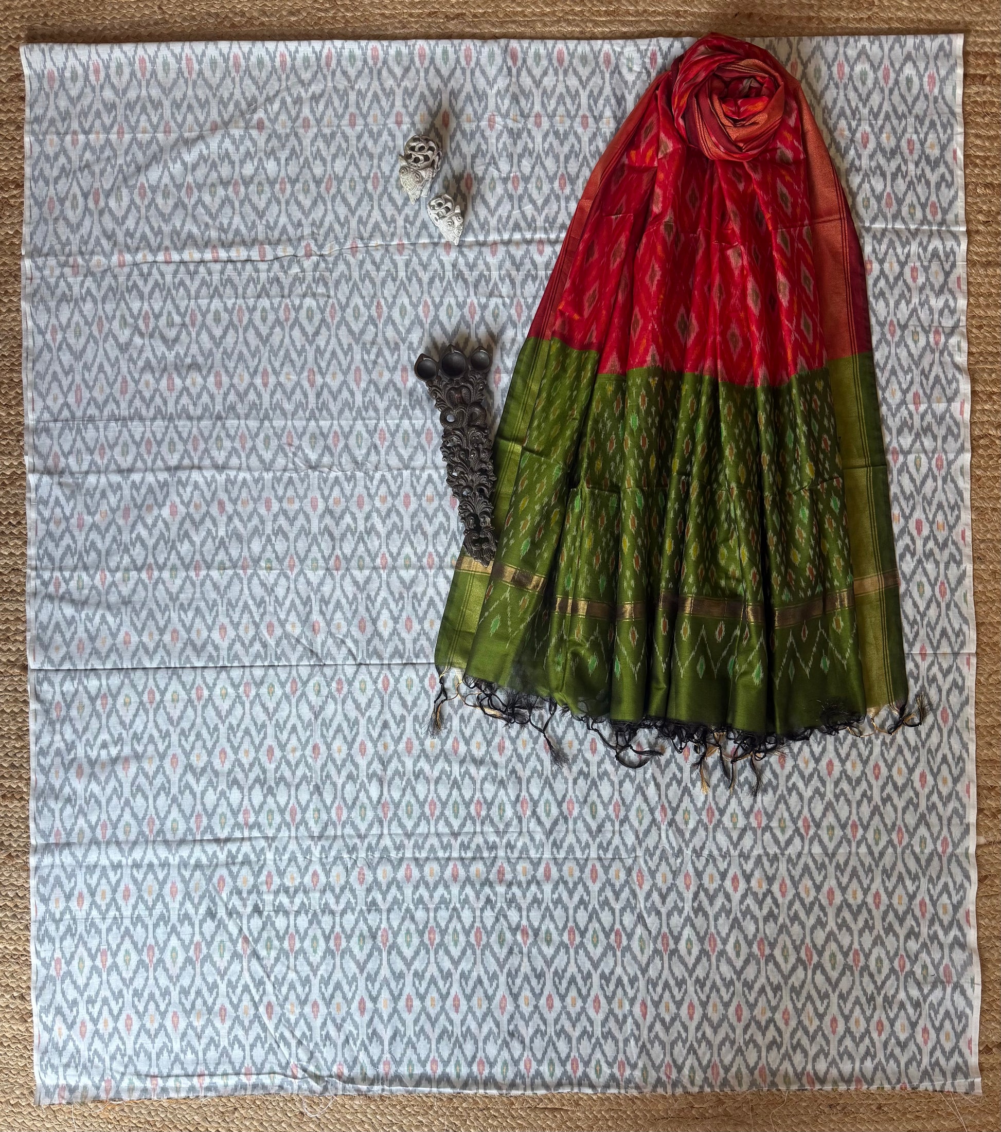 DUPATTA: 2.5 MTRS * 35'' A SLIGHT DIFFERENCE IN SHADE COULD BE DUE TO THE CAMERA & LIGHTS. EMBRACE THE IMPERFECTION !! HAPPY HANDLOOM DRY CLEAN ONLY |