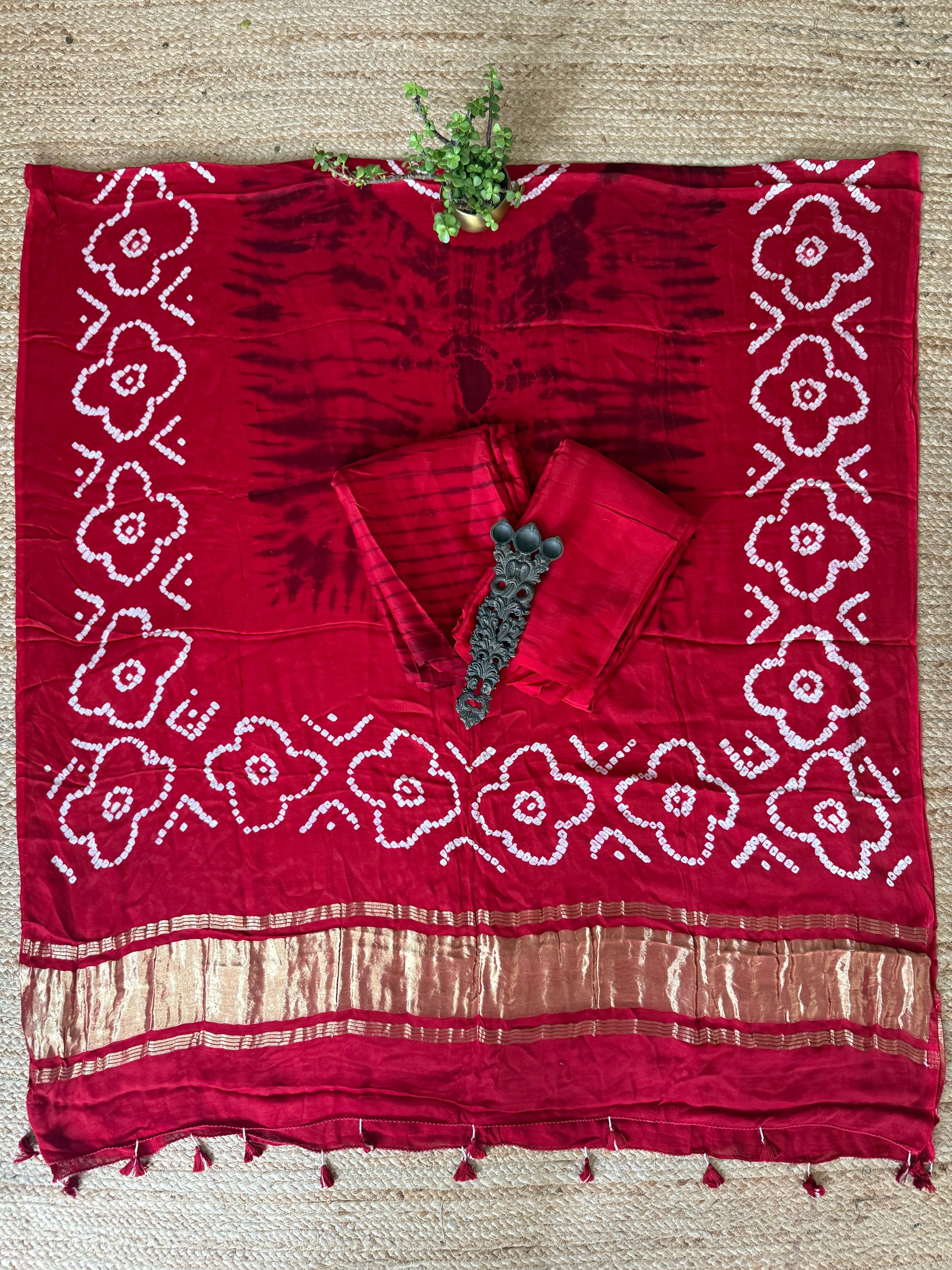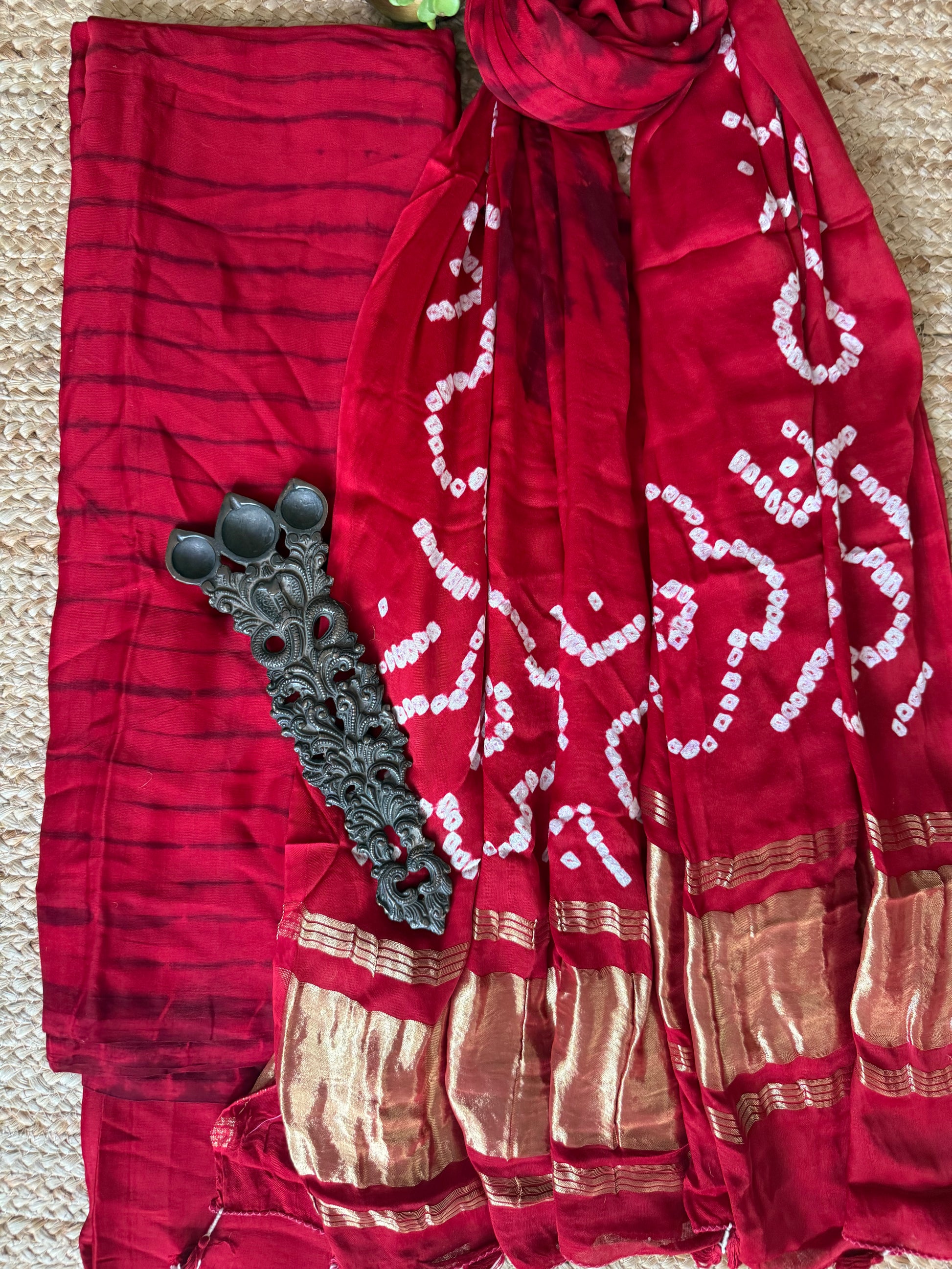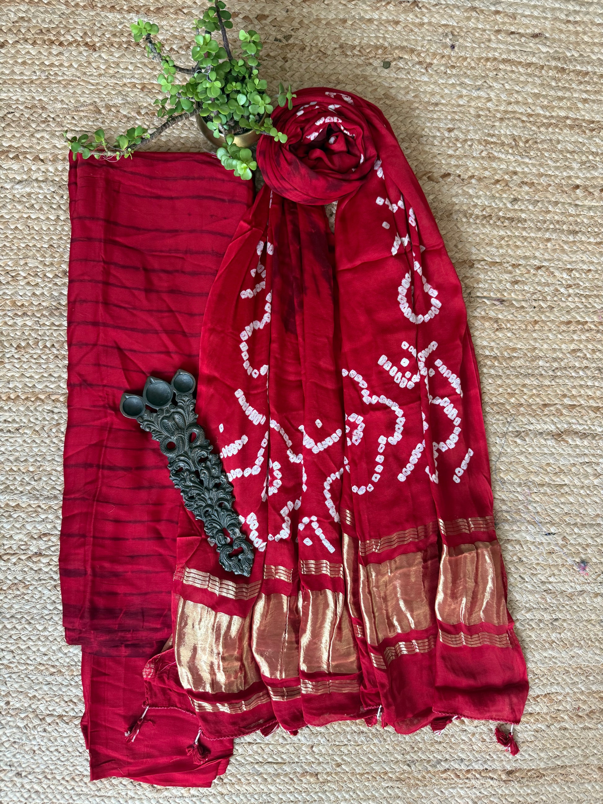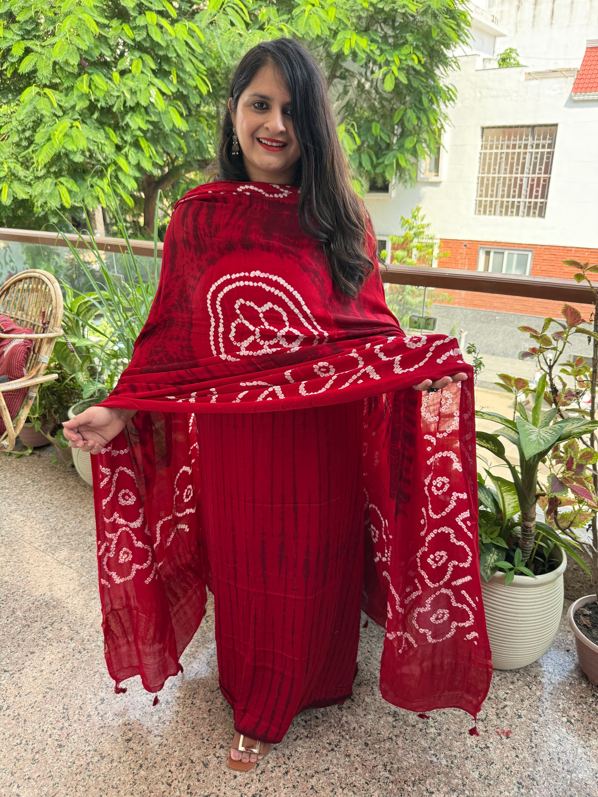 Red & Black Modal Silk Shibori Kurta with Bandhani Shibori handcrafted Modal Silk Dupatta sbs-7