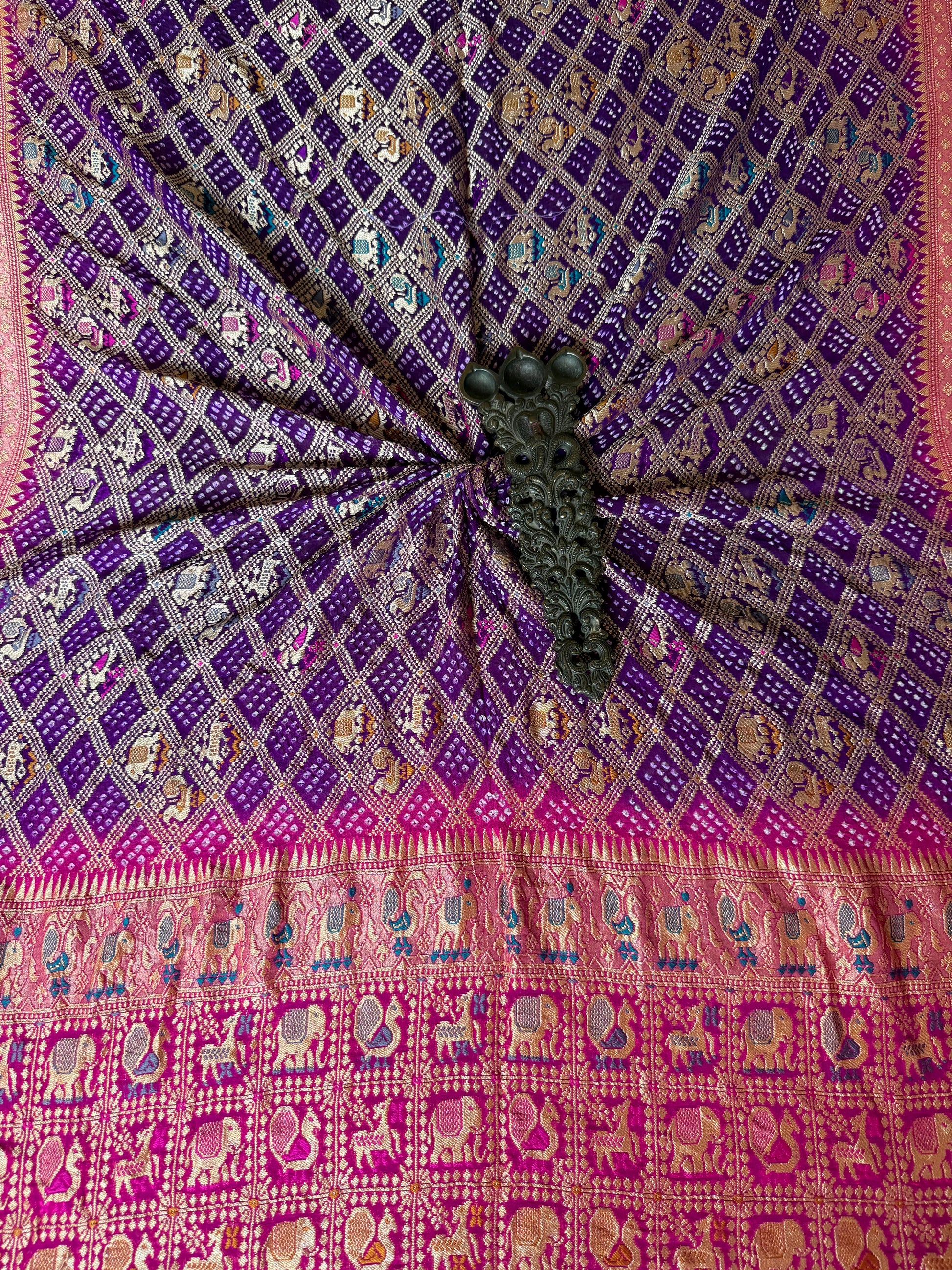 Hot pink and PURPLE ombré Handwoven Bareek Bandhani in Meenakari Jaal  Premium Georgette dupatta