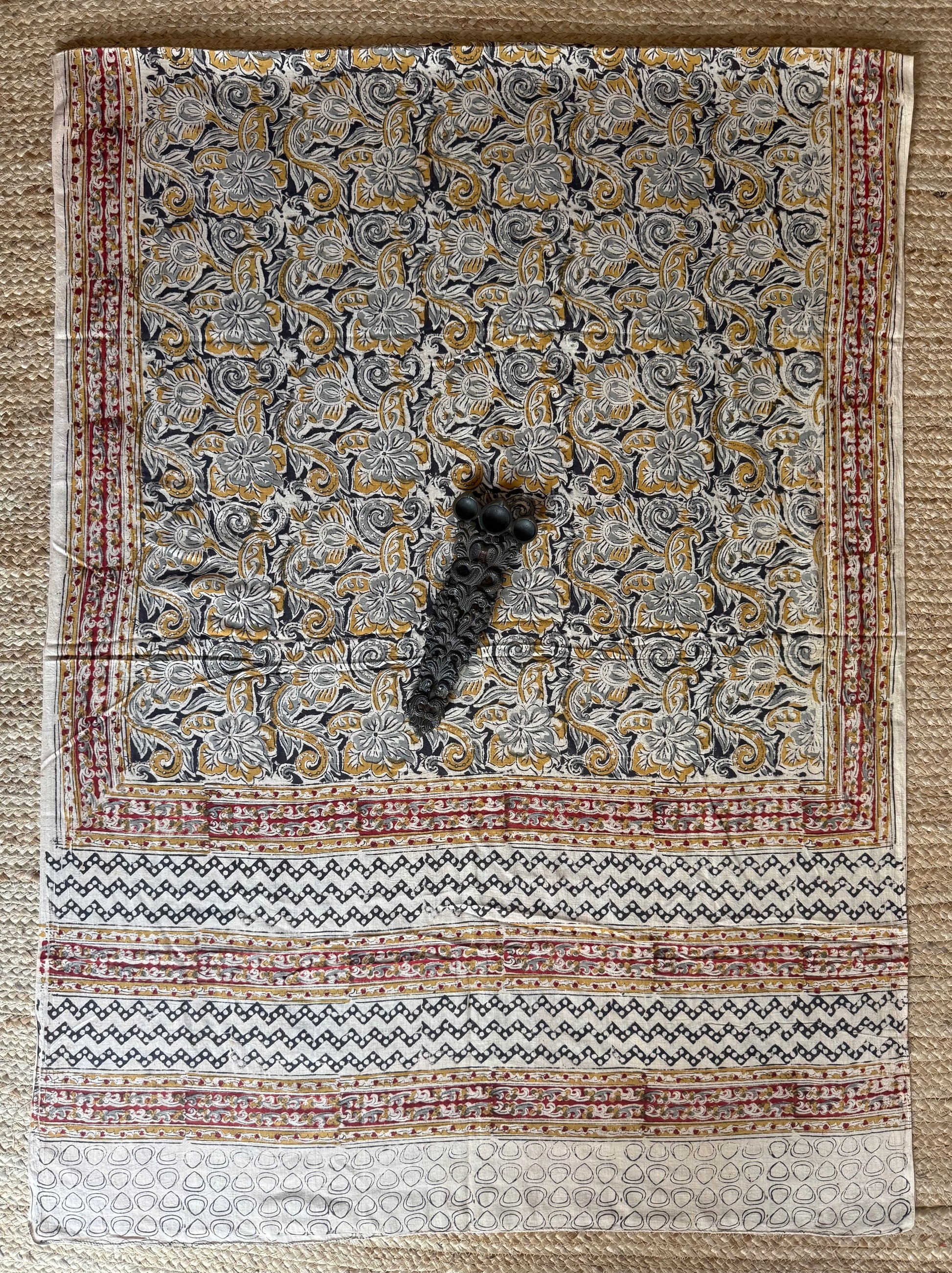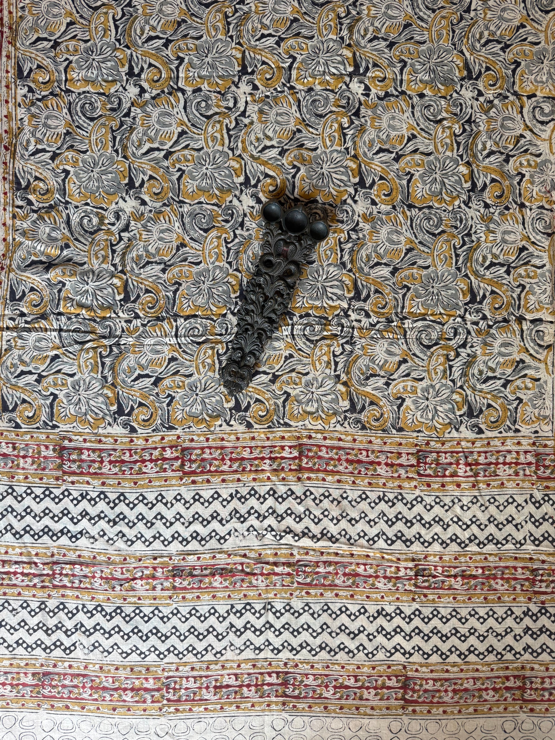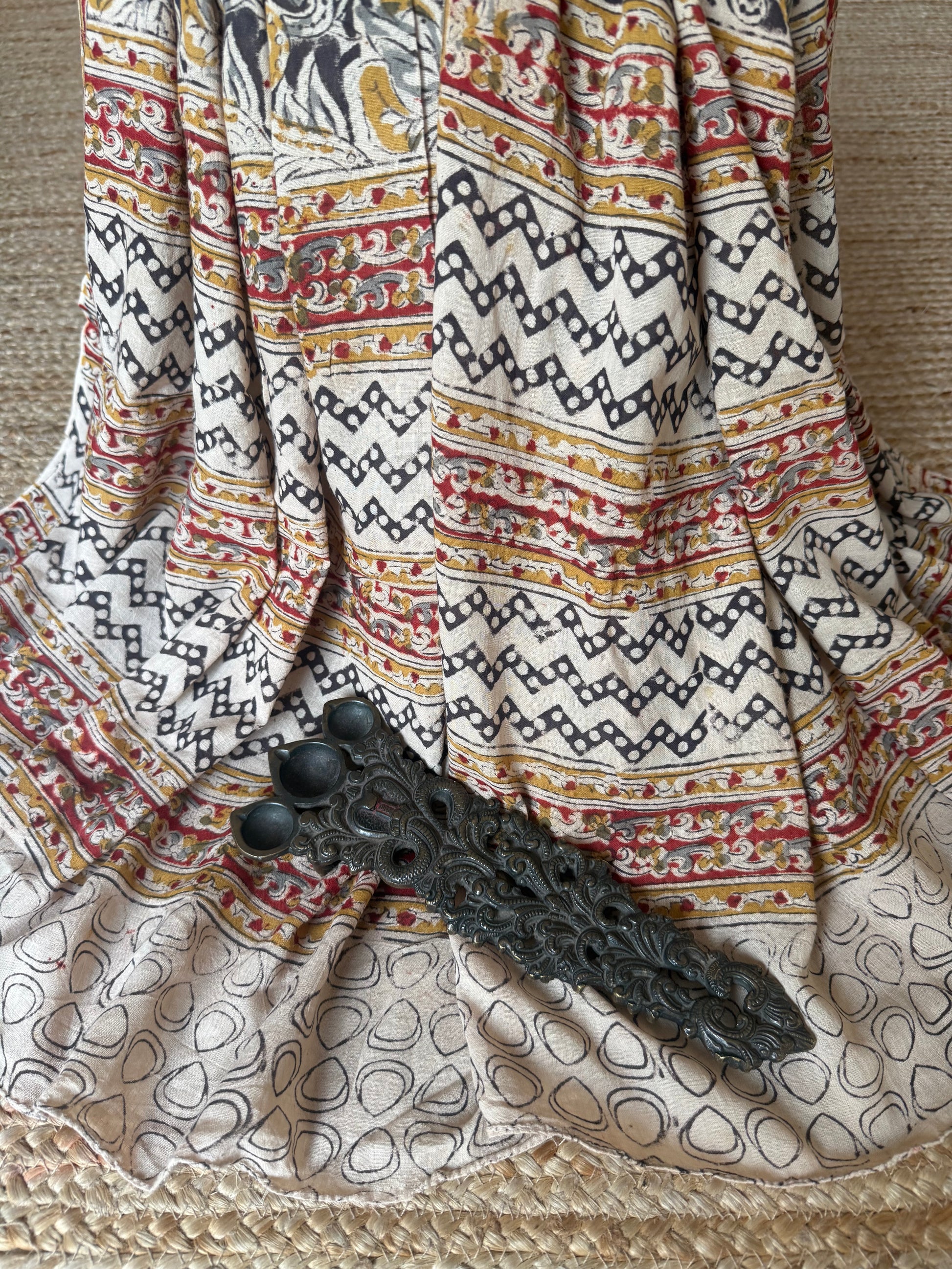 Beige Mustard Kalamkari cotton hand block dupatta