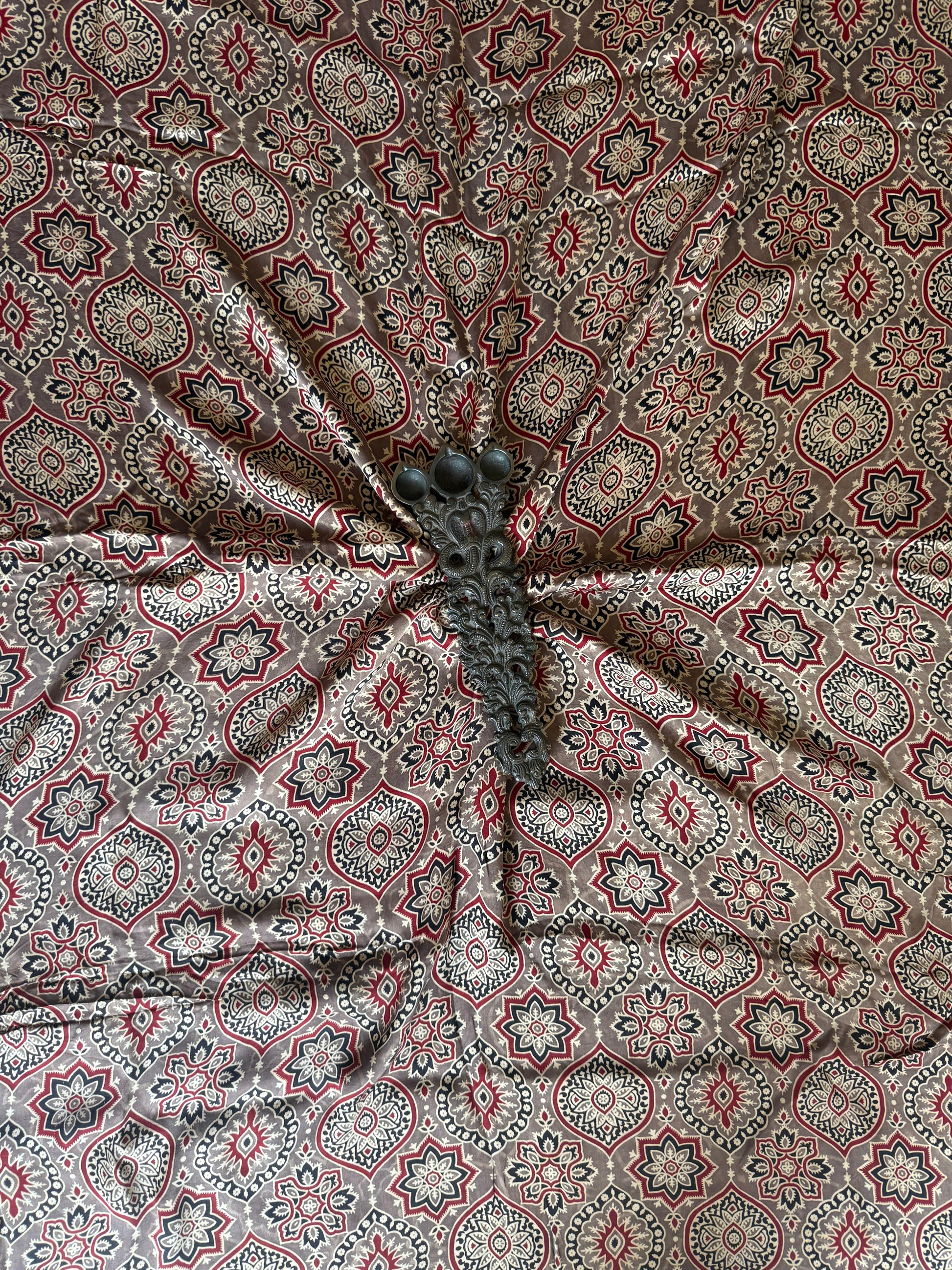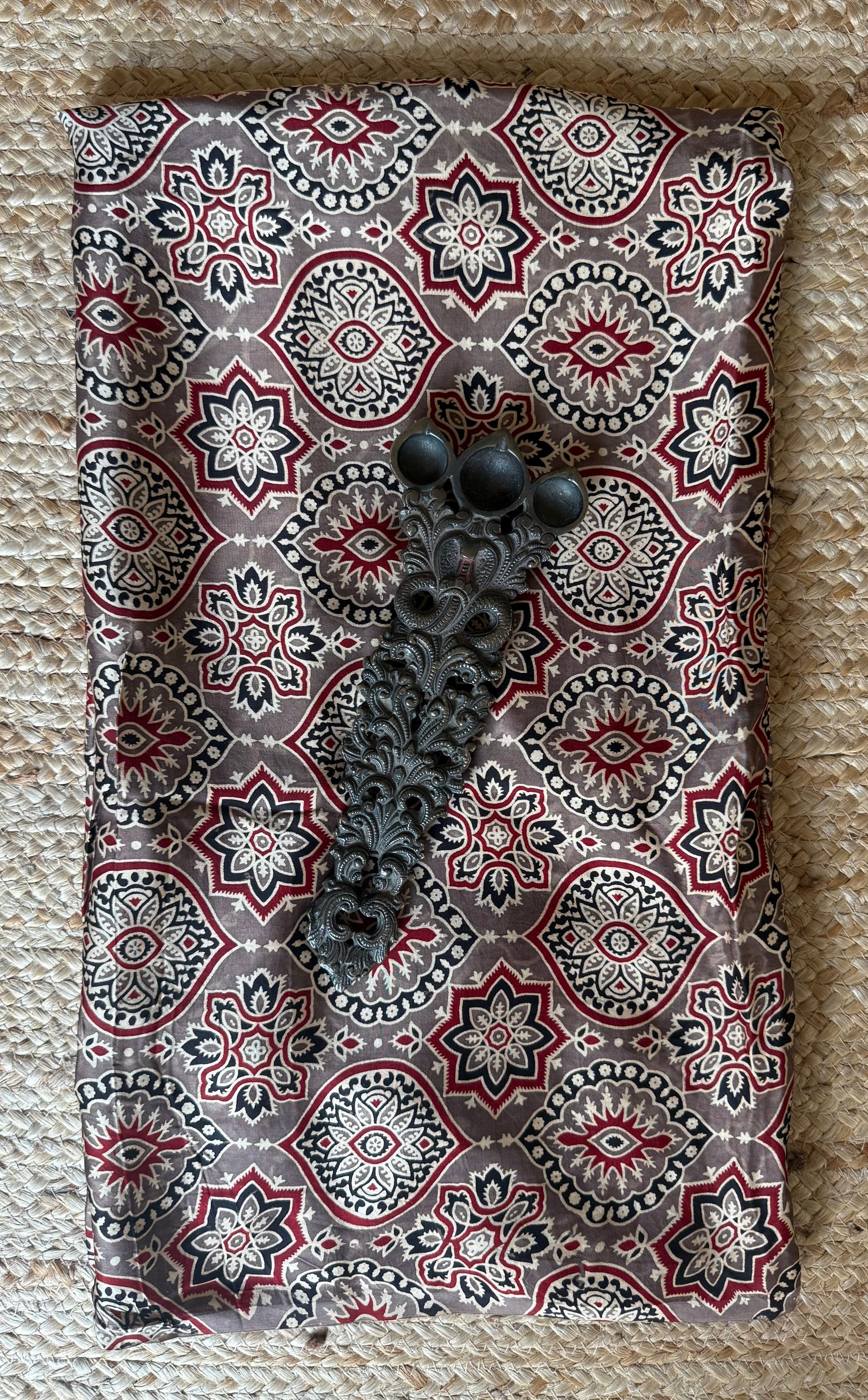 | Chikoo Brown Ajrakh Handcrafted Modal Silk Kurta Fabric fabric: 2.5 mtrs meter