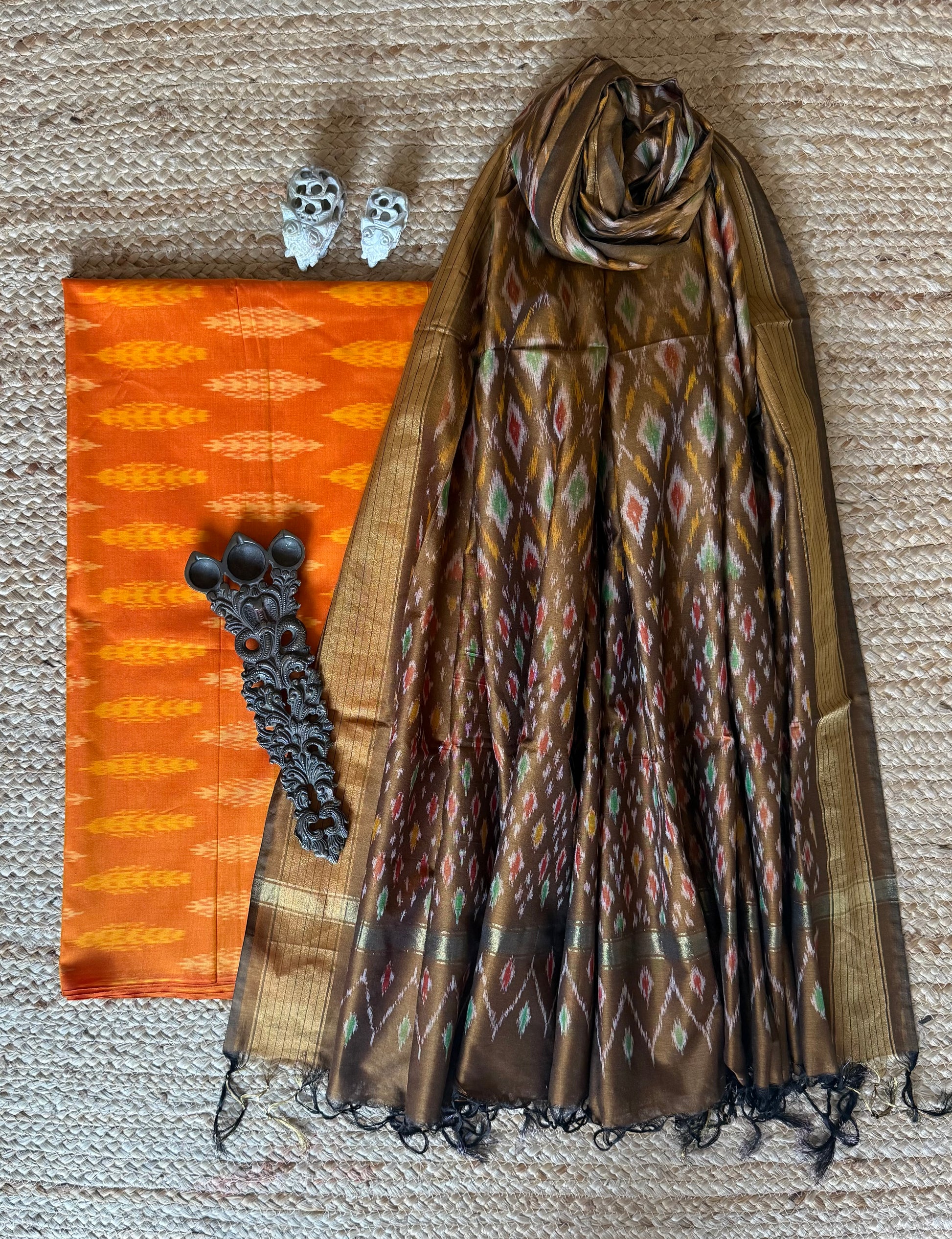 ORANGE IKKAT PURE SILK HANDLOOM KURTA WITH IKKAT PURE SILK HANDWOVEN DUPATTA FABRIC: 2.5 MTRS METER