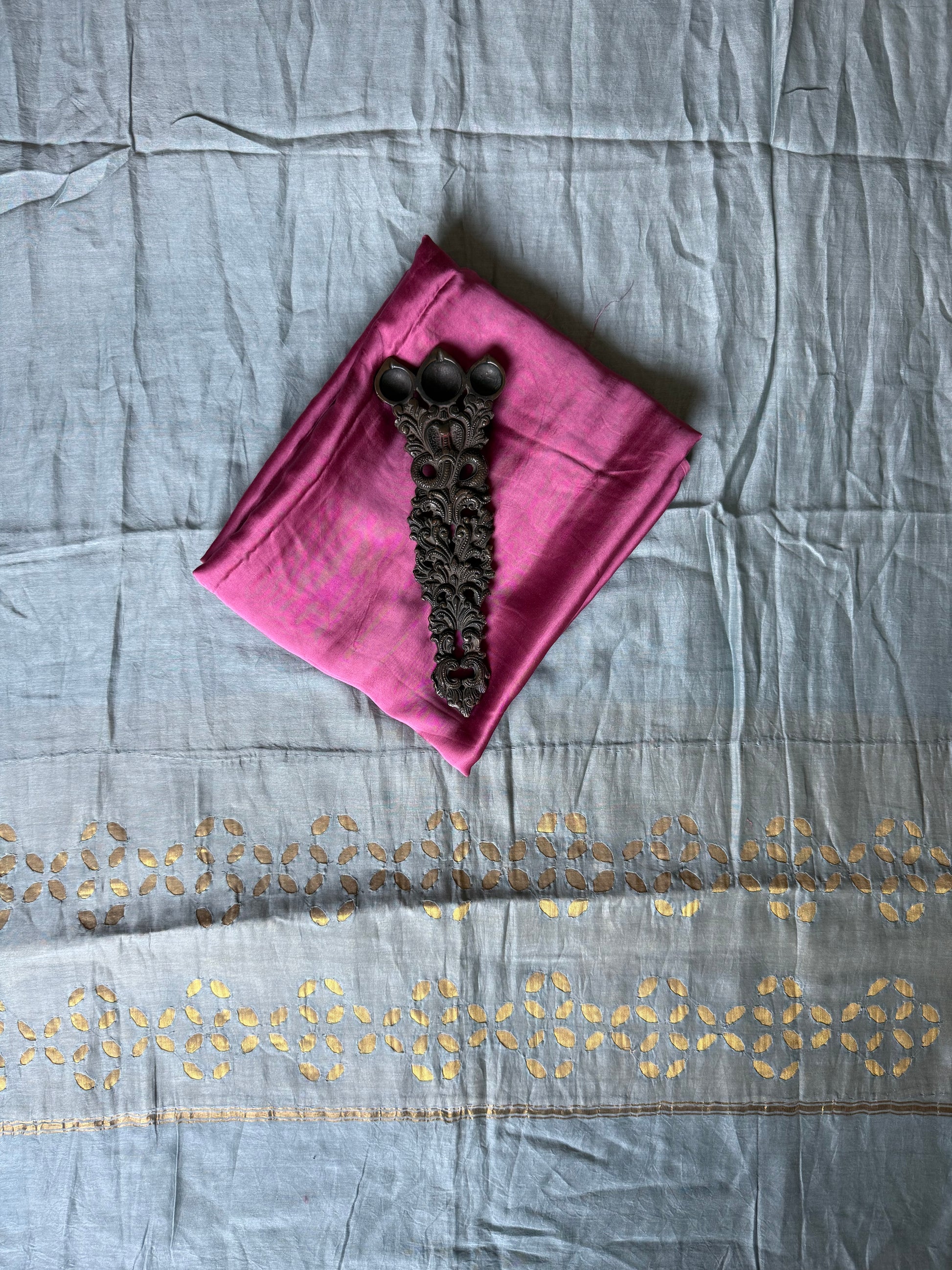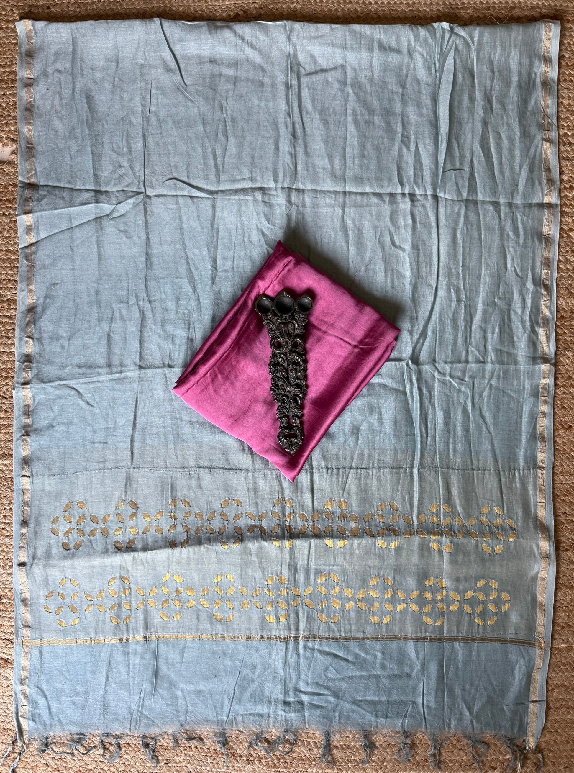 | Pink Modal Silk Kurta With Applique Dupatta cotton hand embroidery