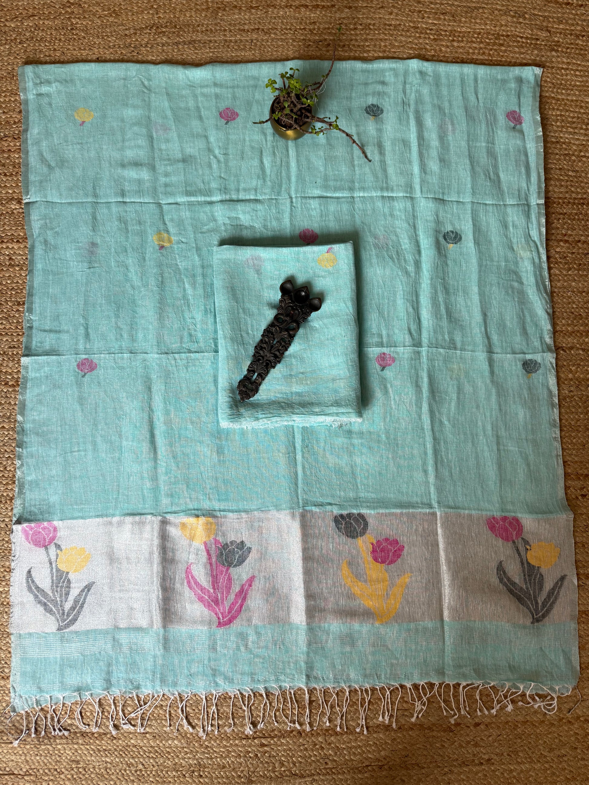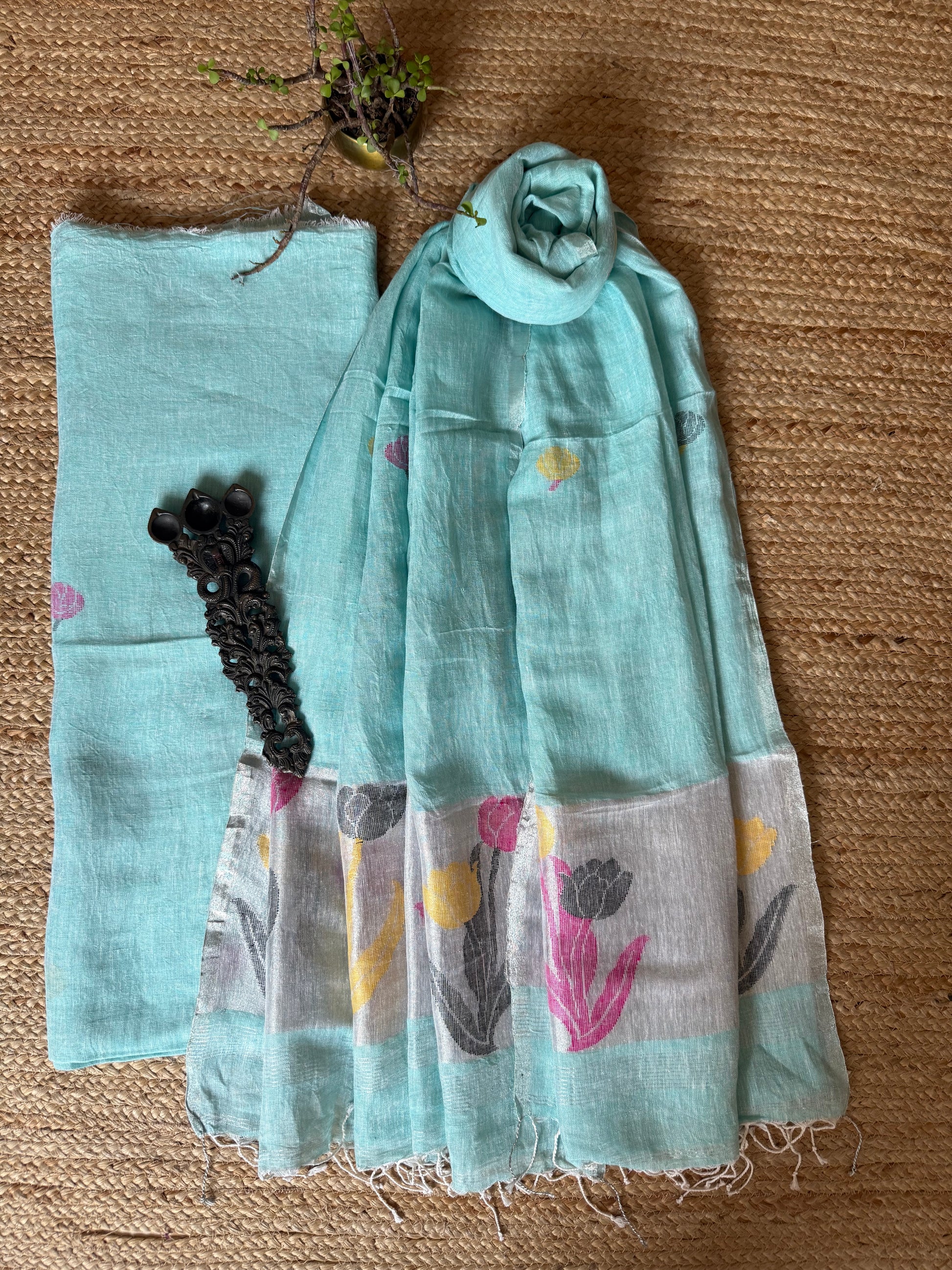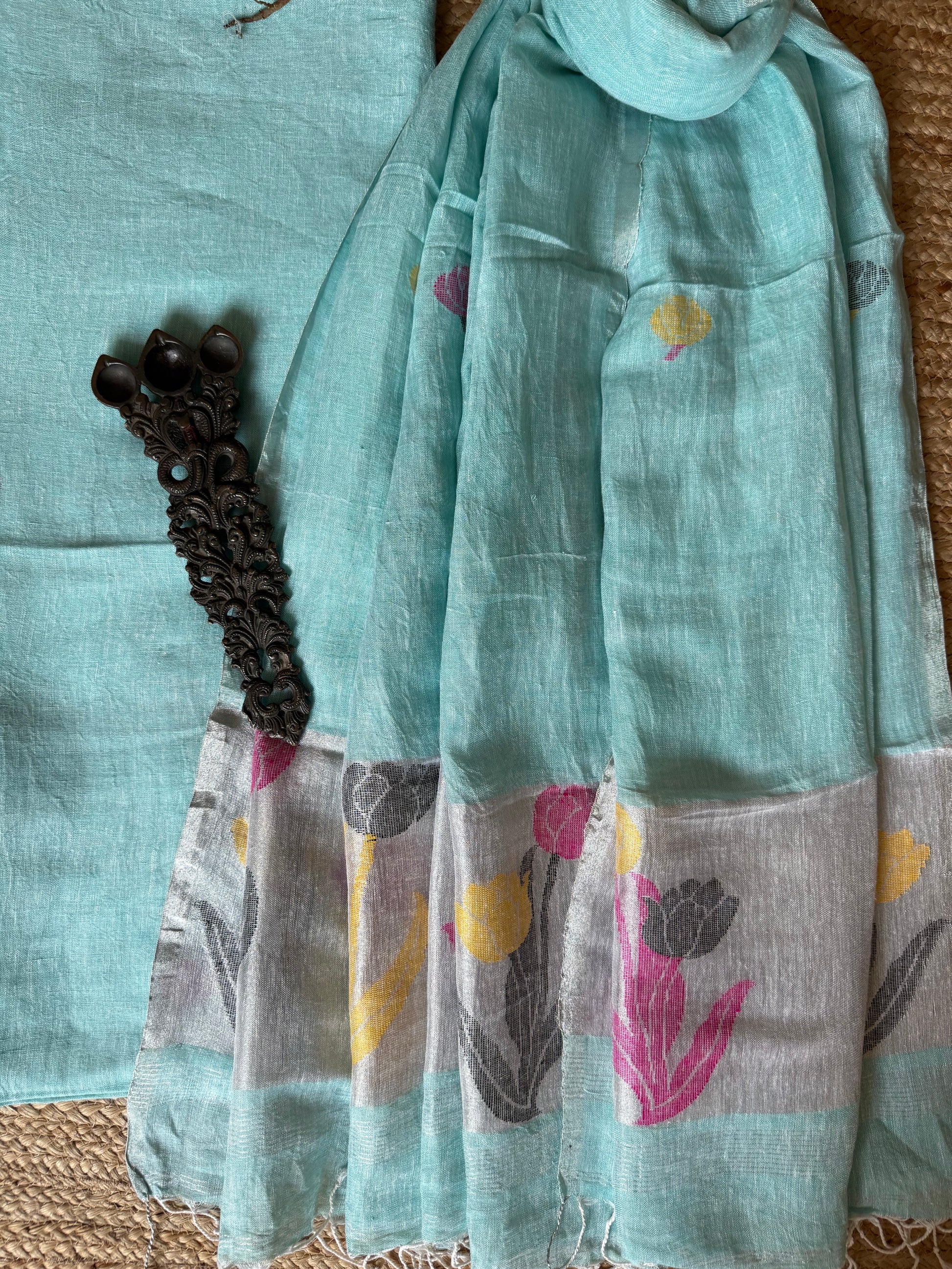 ARCTIC BLUE WOVEN LINEN KURTA SET LJS- 206