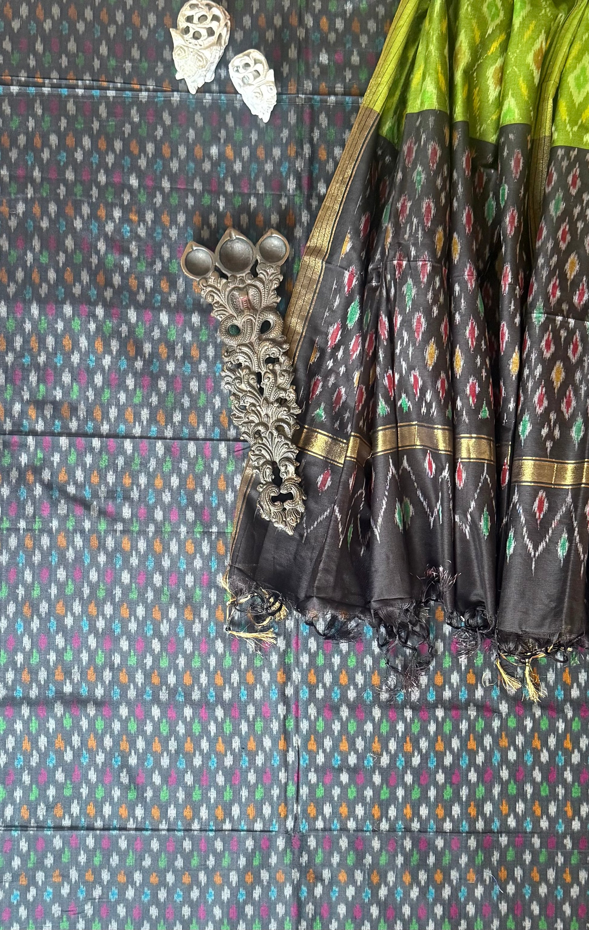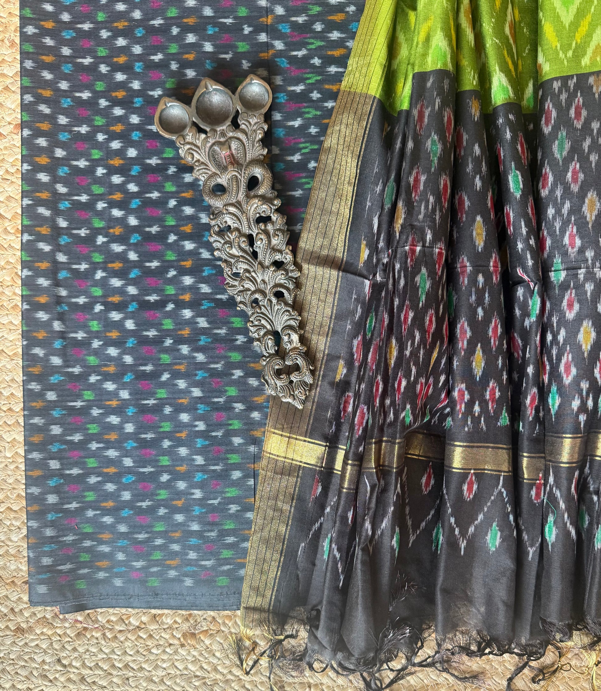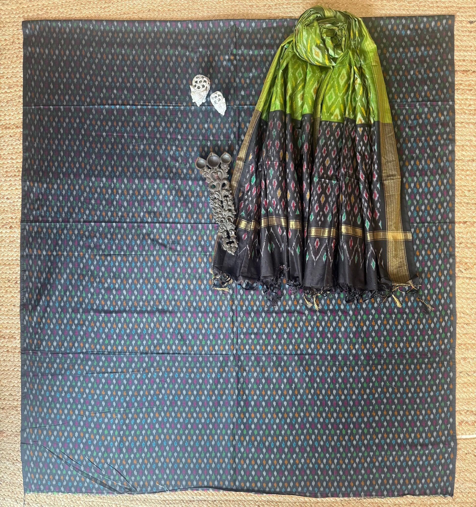 BLACK IKKAT PURE SILK HANDLOOM KURTA WITH IKKAT PURE SILK HANDWOVEN DUPATTA FABRIC: 2.5 MTRS METER