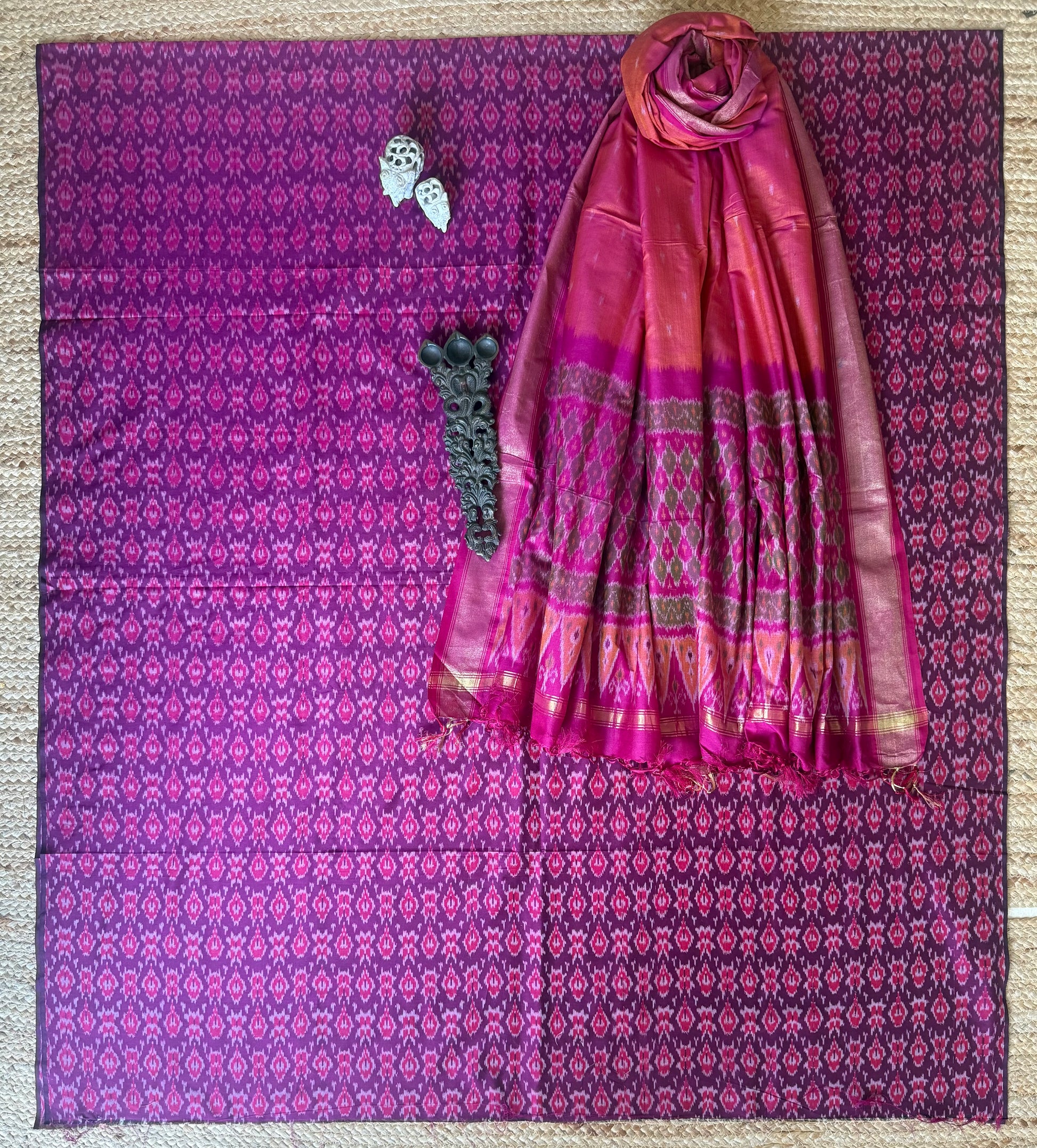 PURPLE IKKAT PURE SILK HANDLOOM KURTA WITH IKKAT PURE SILK HANDWOVEN DUPATTA FABRIC: 2.5 MTRS METER