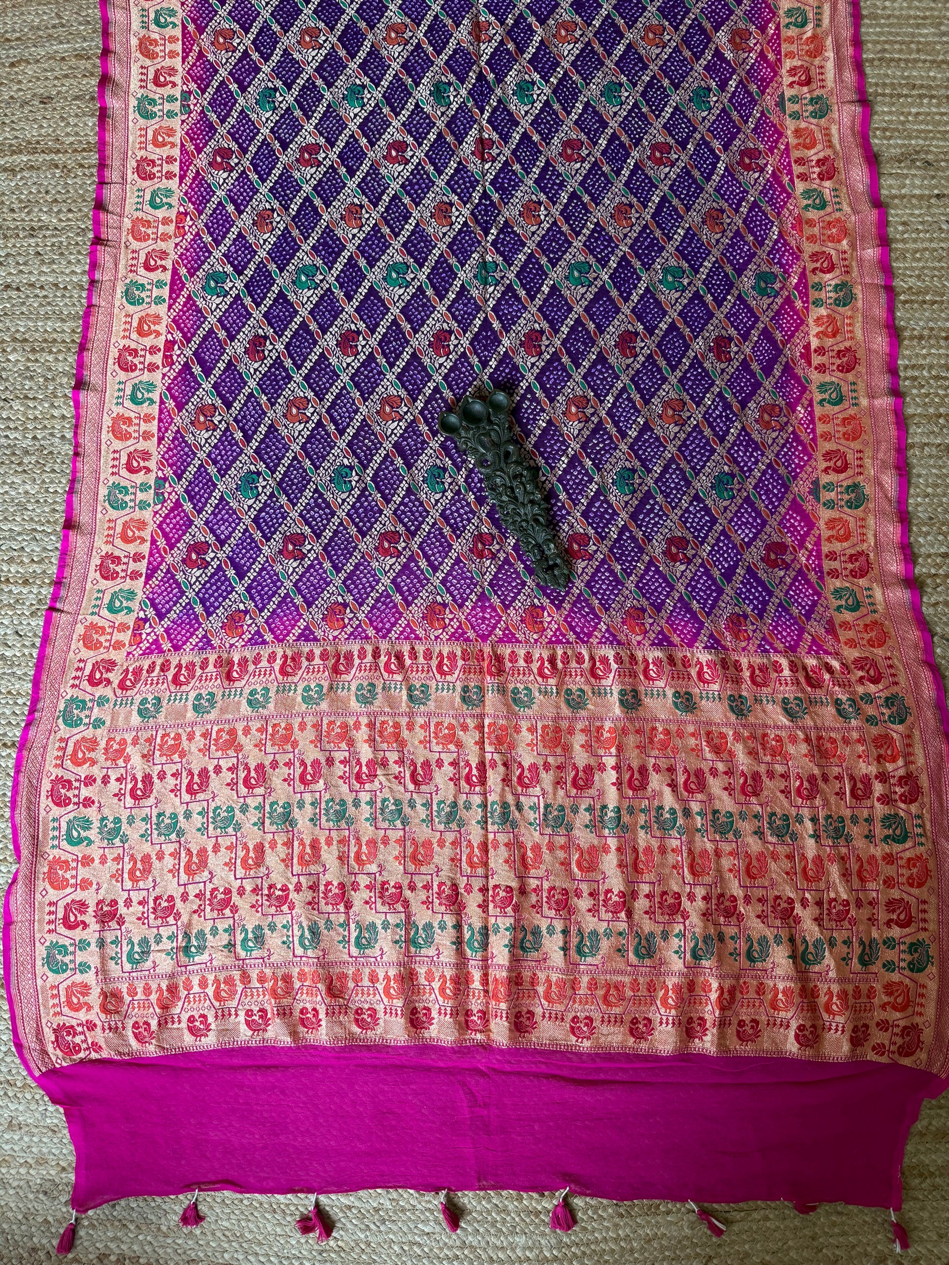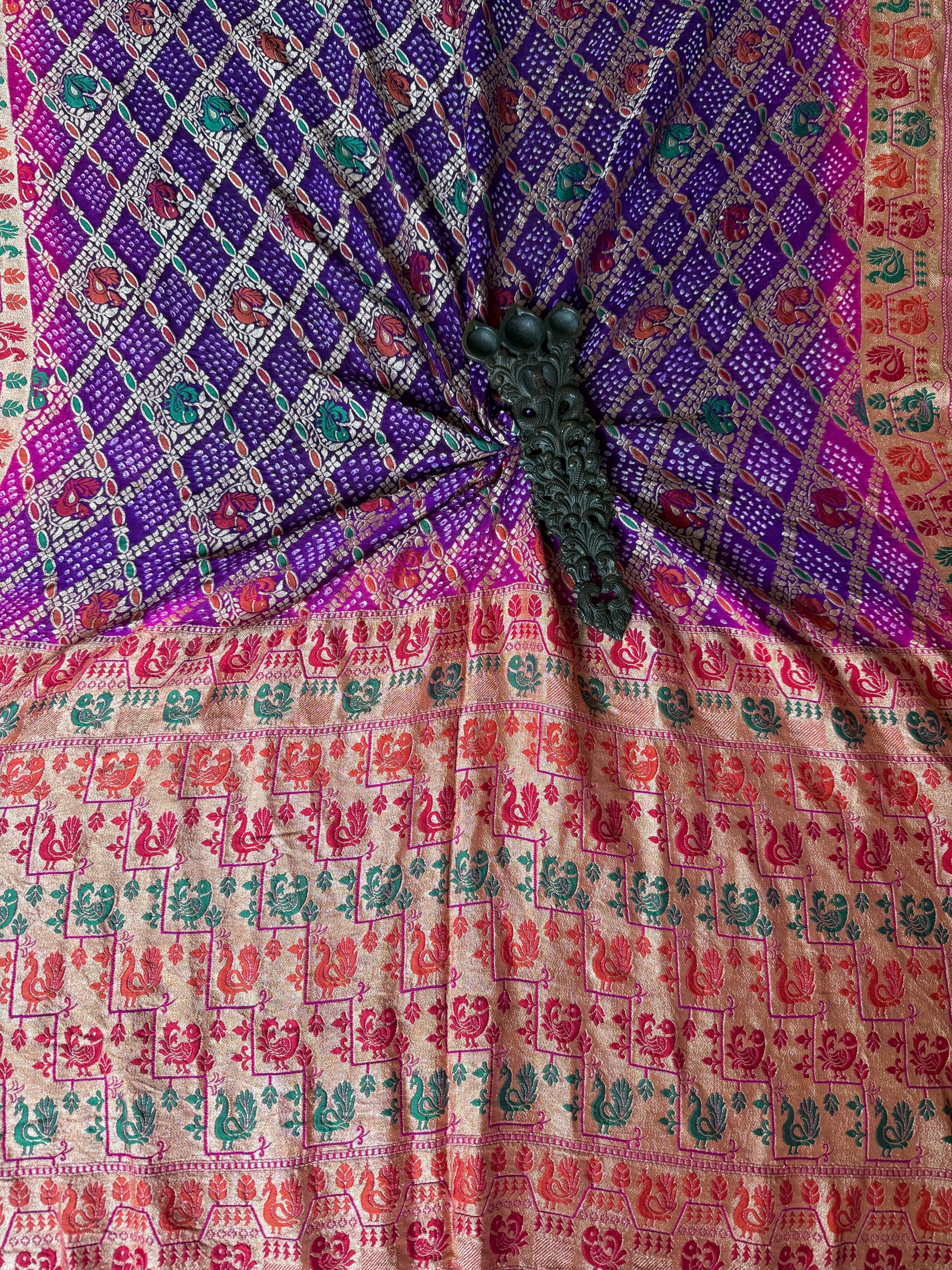 pink & pink ombré shade Handwoven Bareek Bandhani in Meenakari Jaal Premium Georgette dupatta