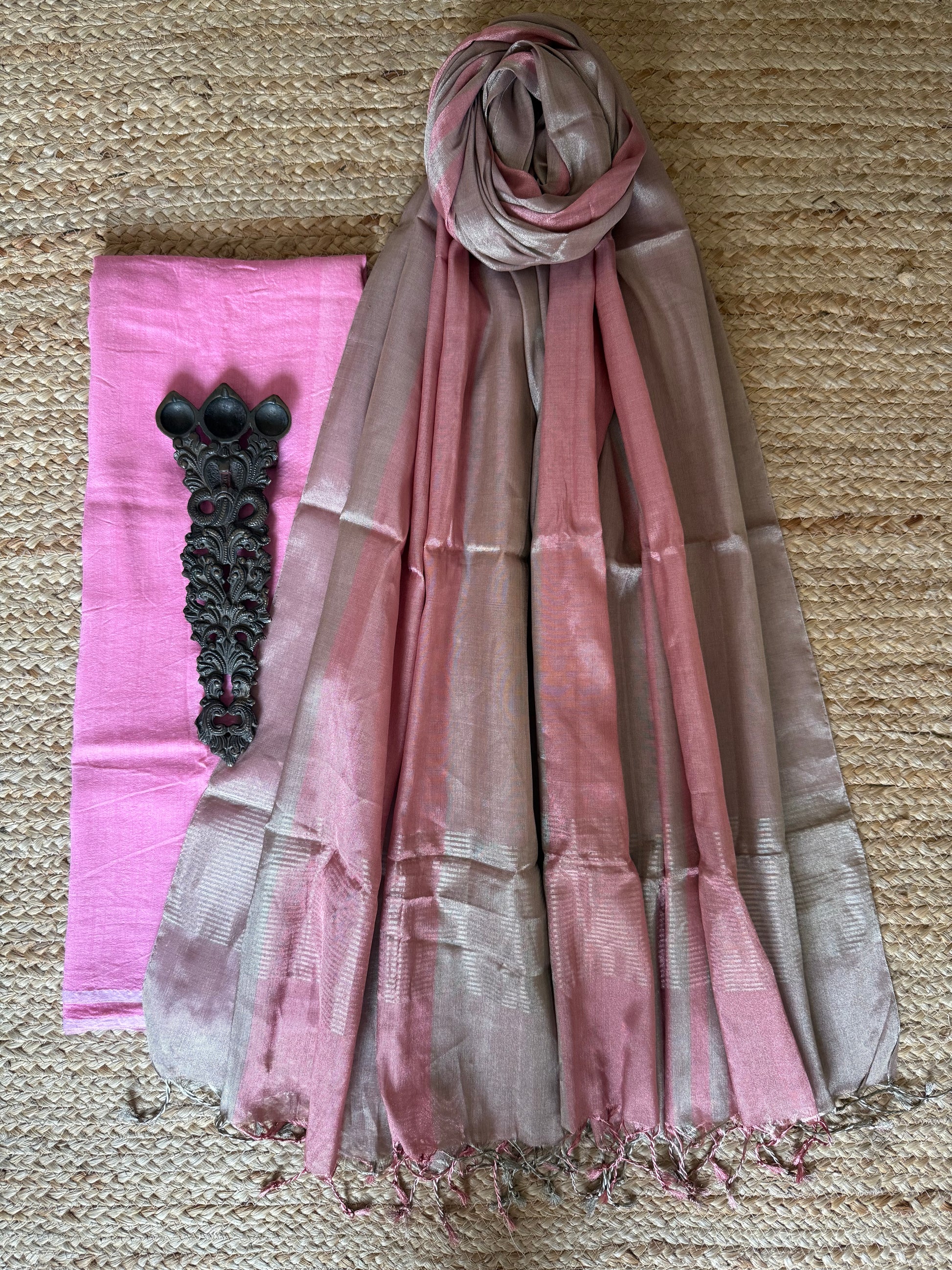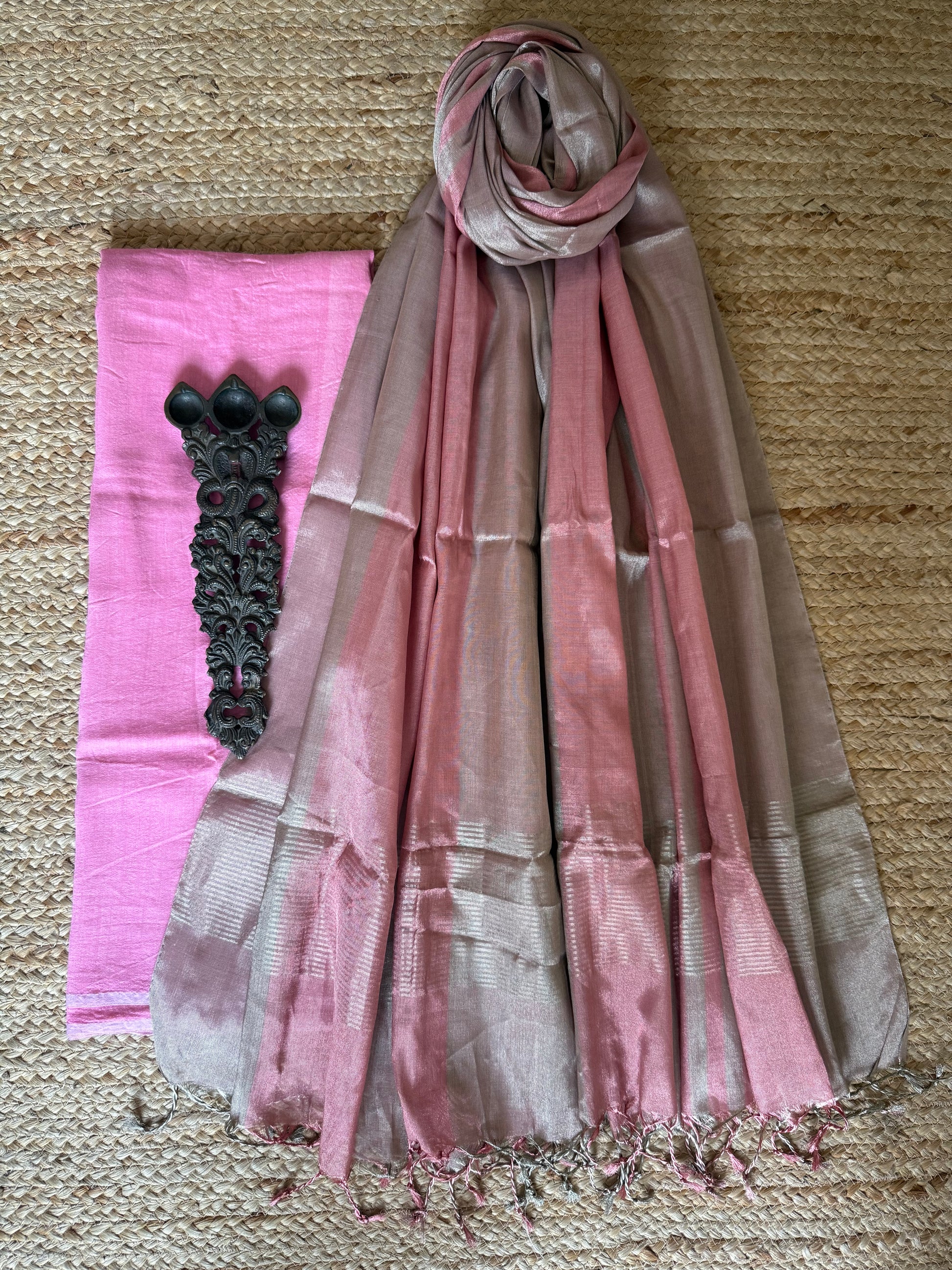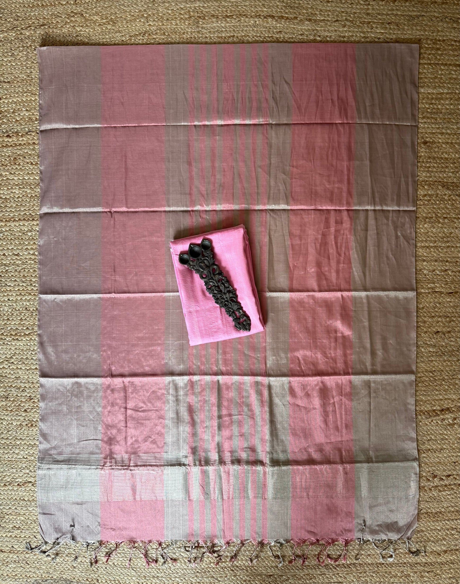 | PINK MUGA SILK KURTA WITH CHANDERI HANDLOOM DUPATTA fabric: 2.5 mtrs each (top & bottom) dupatta: 2.5 mtrs * 35'' a slight difference in shade could be due to the camera & lights. embrace the imperfection !! happy handloom dry clean only |
