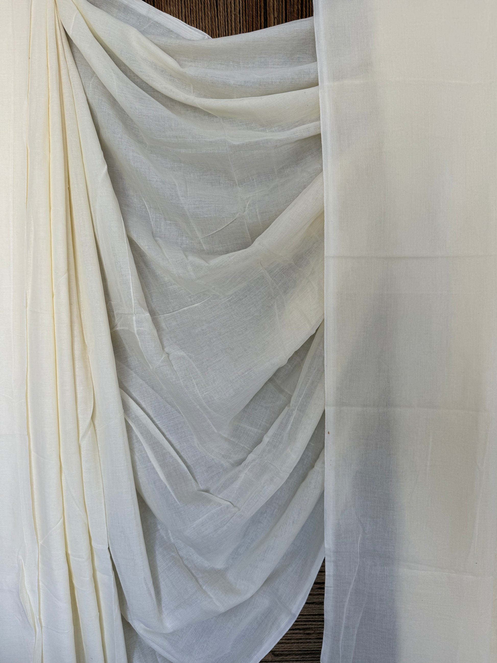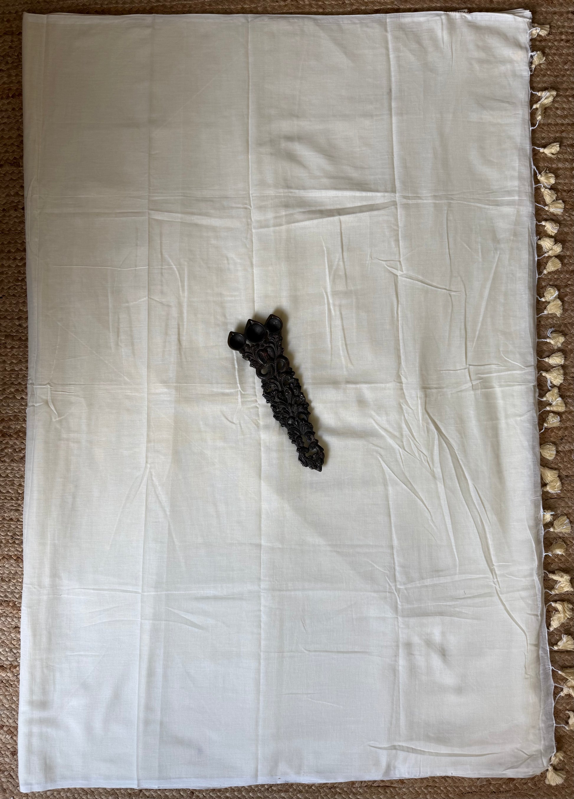 CREAM WHITE COTTON HANDLOOM SAREE WITH THREAD TASSELS AT END