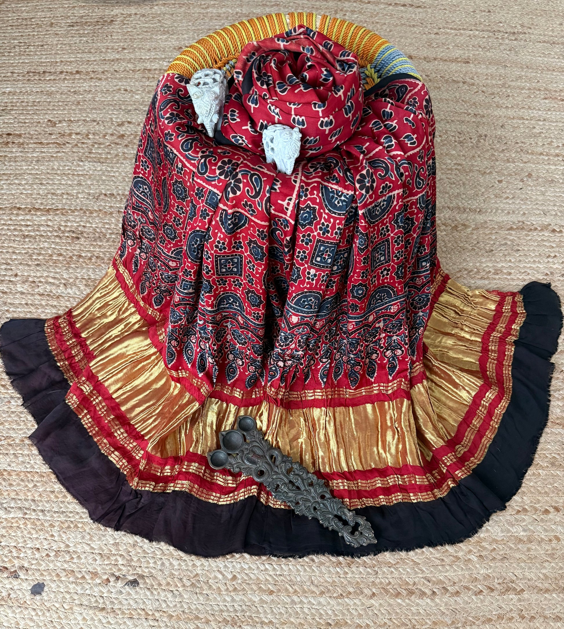 MAROON AJRAKH SILK ZARI WOVEN DUPATTA