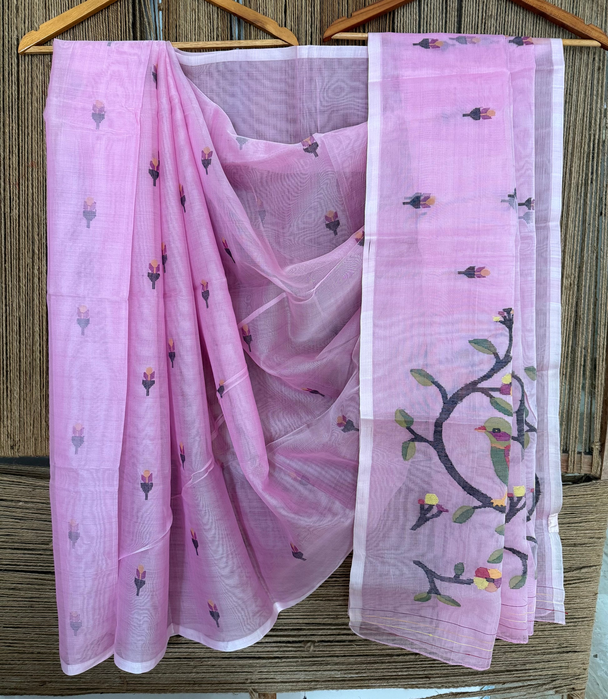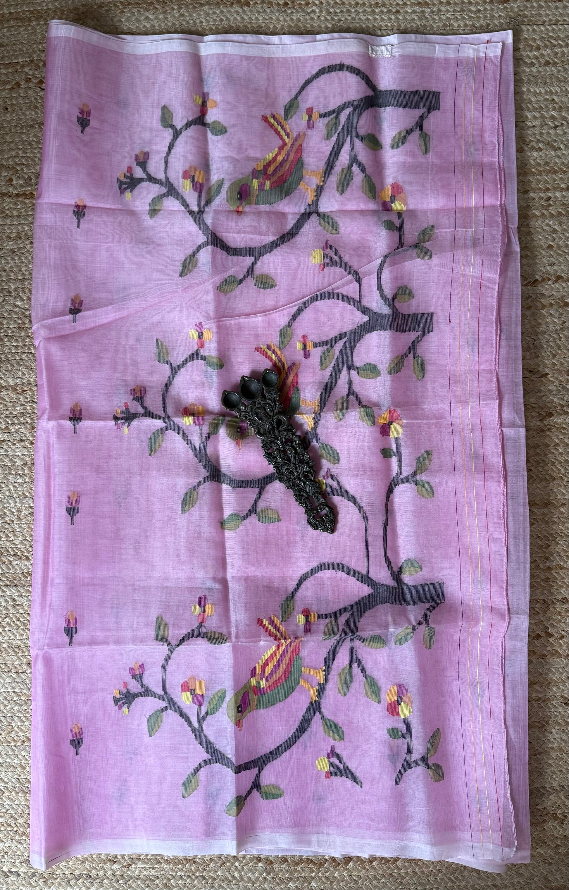 | ROSE PINK handwoven pure muslin silk sari doesn't have its own blouse Sari Length 5.5 meter slight difference in shade could be due to camera & lights. embrace the imperfection !! happy handloom dry clean only |