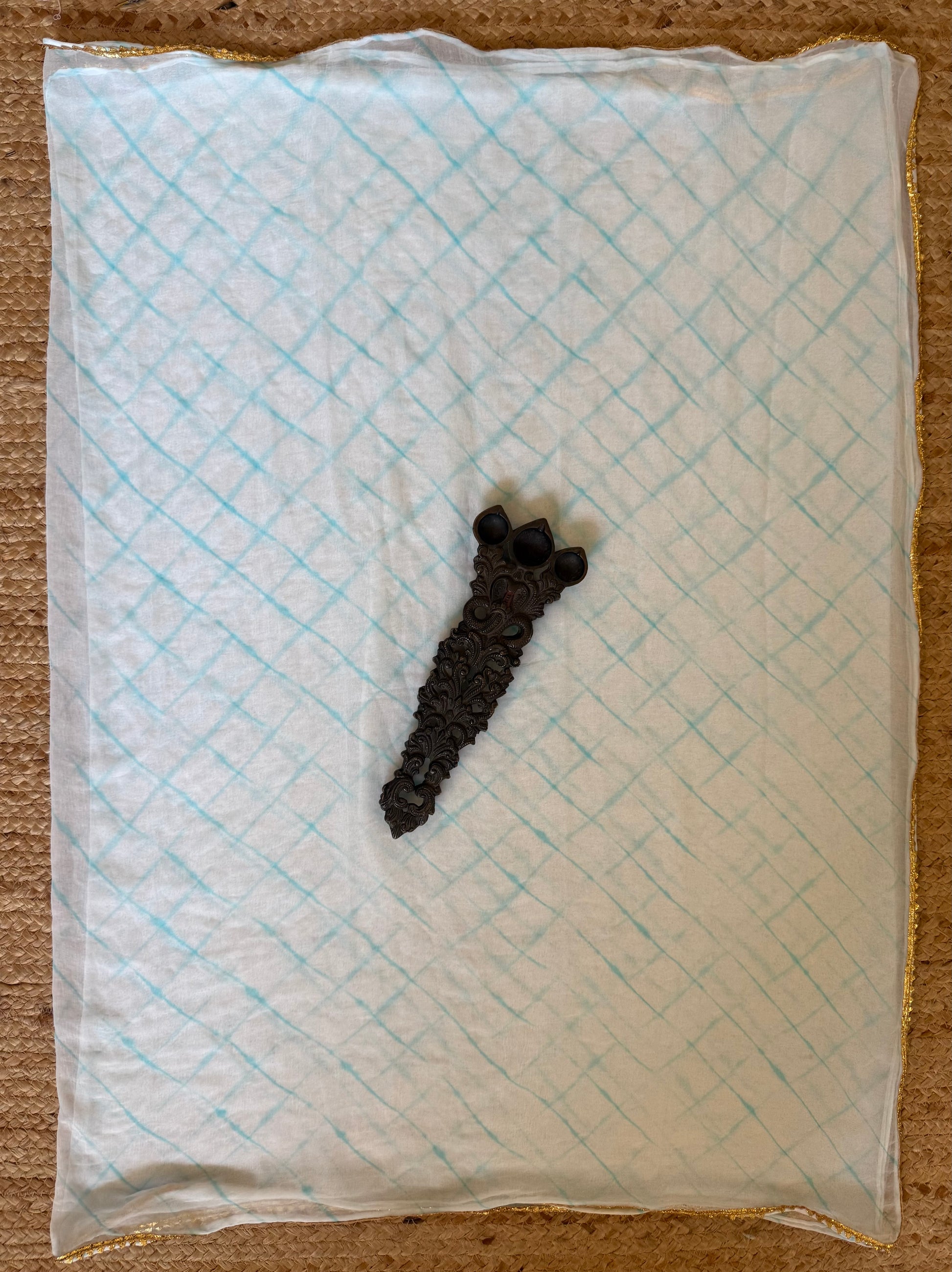 White Blue leheriya dupatta with gotta lining